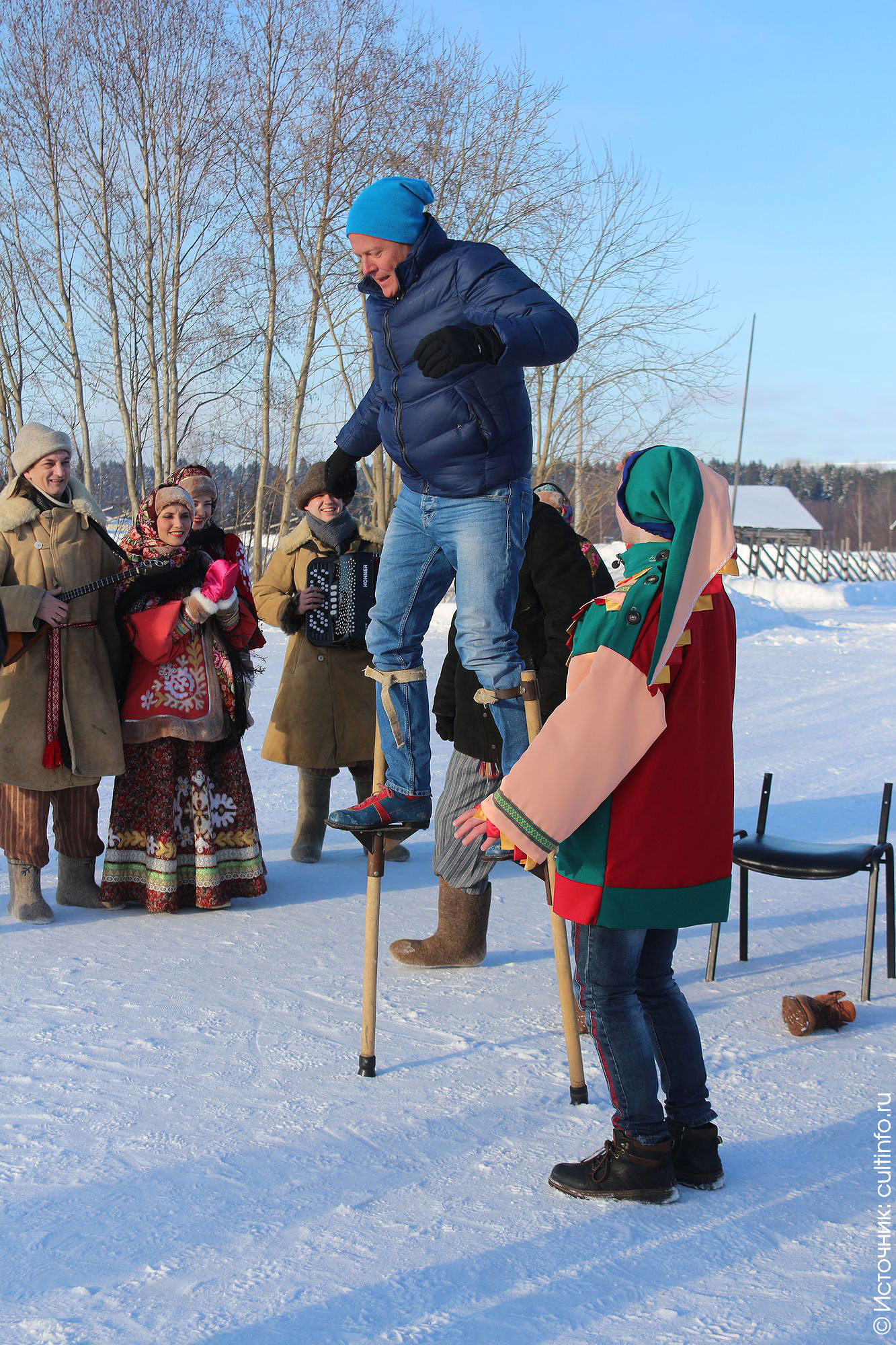 В «Семёнково» телеведущий поучаствовал в традиционных русских зимних забавах: метании валенка, ходьбе на ходулях и в лазании на столб. Вместе с гостями деревни он продемонстрировал и традиционную английскую забаву на масленицу – блинный бег. Участники должны были пробежать со сковородкой в руке, подбрасывая на ходу блины. Требовалось трижды подбросить блин, не уронив и не испортив формы.