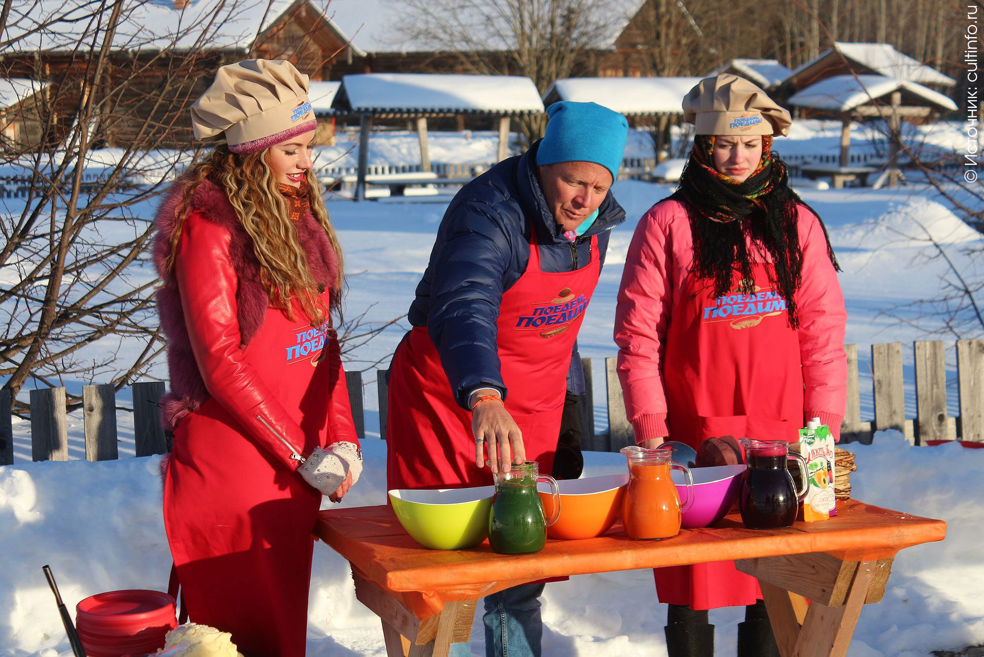 Съемочная группа известной программы телеканала НТВ «Поедем, поедим!» путешествует по Вологодчине. В среду гости побывали в Череповце, где отлили «котлету» из чугуна, а накануне посетили деревни Семёнково и Севастьяново.