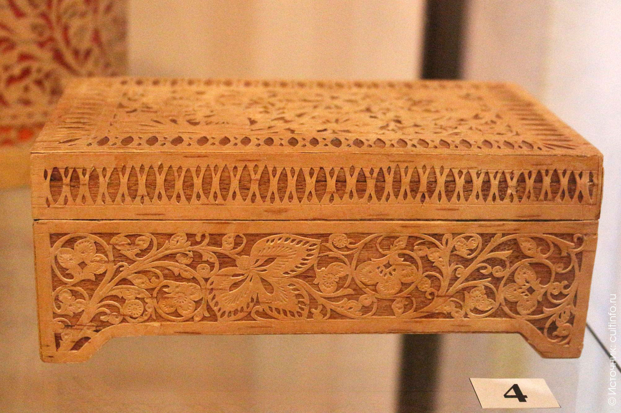 Особое место среди народных промыслов Великого Устюга занимает резьба по бересте. Искусство шемогодских резчиков, возникшее в Великом Устюге в конце XVIII – начале XIX века, в народе называют «берестяным кружевом». Им украшали шкатулки, коробочки, чайницы, пеналы, туеса, короба, блюда, тарелки. На выставке посетители увидят изделия заслуженного художника России Татьяны Вязовой, Татьяны Слепухиной, Нинель Старковской, Елены Шарыповой, Татьяной Беляевой, Людмилой Корепиной. «Береста – очень теплый, легкий и бархатистый материал. Когда держишь в руках эти изделия, возникают особые чувства», – поделилась куратор выставки Марианна Мурашева.