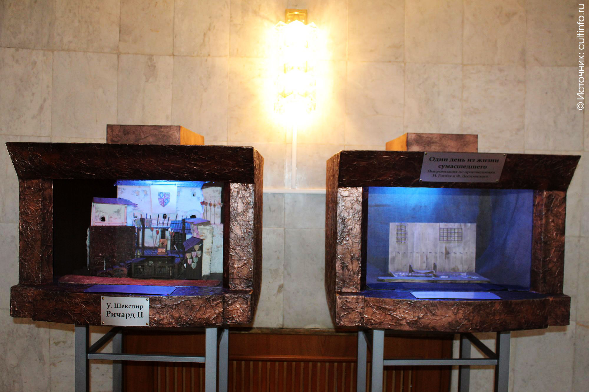 Музей будет располагаться на втором этаже драмтеатра. Макеты шести спектаклей размещаются в специальных «коробках», имитирующих сцену, – подмакетниках. Именно в таком виде они находятся в художественном цехе, когда идет изготовление декораций к спектаклю в «натуральную» величину. Все макеты, представленные в экспозиции, подлинные и изготовлены при постановке спектаклей. Только один из макетов – новодел: декорации к спектаклю «Карамазовы и ад», представленному на IX фестивале «Голоса истории». Изготавливая этот макет, сценограф драмтеатра Виктор Рубинштейн впервые сделал уменьшенную копию стены Вологодского кремля, чтобы на ее фоне расположить декорацию (также он поступал позже, изготавливая макеты к другим фестивальным спектаклям: «Эшелон», «Ричард II» и т.д.). Подлинный макет был утрачен, но благодаря сохранившимся фотографиям заведующему постановочной частью драмтеатра Александру Кулакову удалось восстановить сценическое оформление спектакля в мельчайших подробностях.