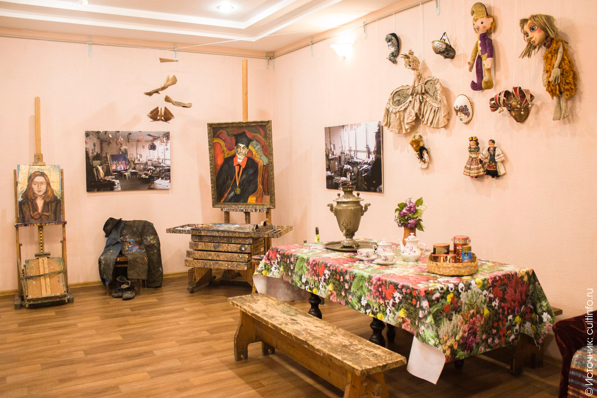 В экспозиции на первом этаже несколько тематических разделов. Это, во-первых, графика – пастельная, карандашная, угольная, включая чудом сохранившийся рисунок 1934 года, когда Володе Корбакову было всего 12 лет. Воочию можно убедиться в том, что художник был не только ярким живописцем, но и прекрасным рисовальщиком. Во втором и третьем залах выставлена коллекция «Меня рисуют друзья», которую мэтр собирал более 50 лет. Необычно оформлен четвертый зал, где воссоздана атмосфера мастерской Корбакова: фотографии ее интерьера сочетаются с вещами, живо характеризующими рабочий быт художника и его личность.