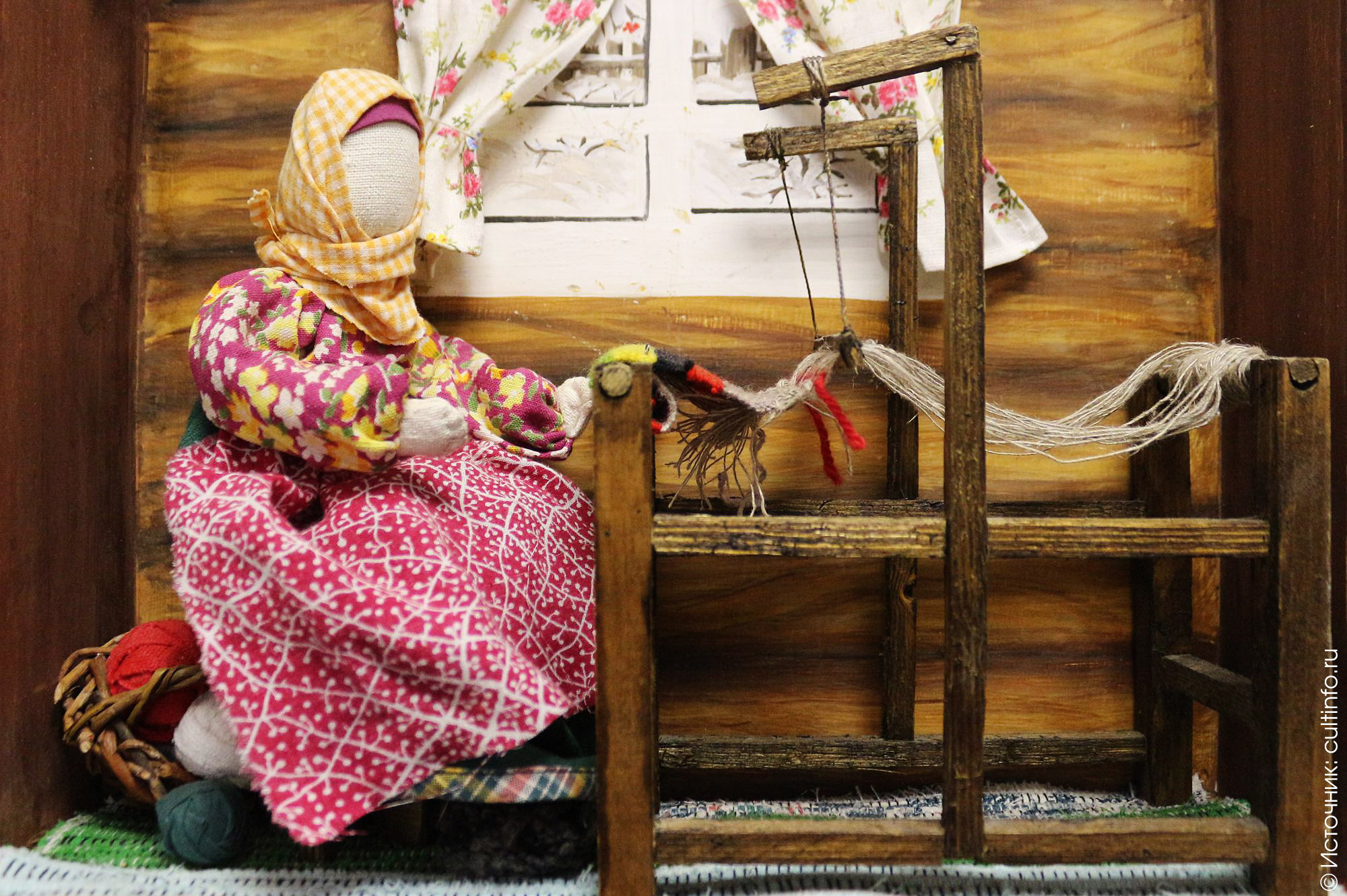 Куклами в старину не только играли, у них было множество, говоря современным языком, «дополнительных функций». К примеру, особо берегли и почитали обережных кукол, которых даже ставили в красный угол, к иконам. Считалось, что обережные куклы оберегают от болезней; их брали с собой в дальнюю дорогу, клали в колыбель к новорожденному от сглаза. Делались специальные куклы на достаток, на хороший урожай; изготавливались различные обрядовые куклы, скажем, свадебные. Были куклы-мамушки, изображаемые с маленькими «детками» в руках, – хранительницы семьи; куклы-ведучки или ведуницы, «ведущие» перед собой кукольного ребеночка и символизирующие выбор правильного жизненного пути. На выставке также есть целый ряд кукол, изображающих традиционные виды крестьянского труда: за ткацким станком сидит ткачиха, мастер плетет корзины, гончар делает горшки, пряха прядет, кружевница склонилась над коклюшками.