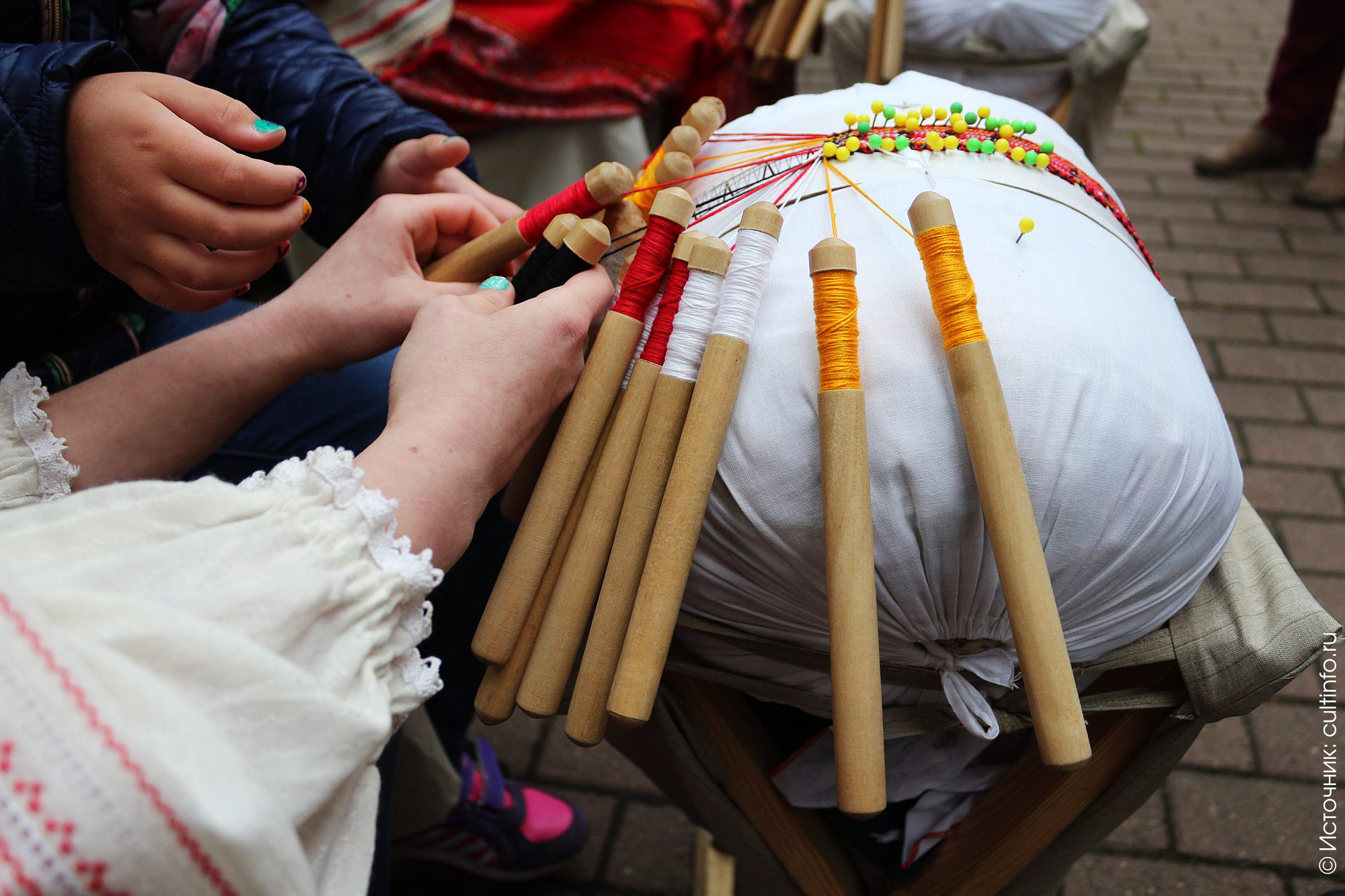 В этот раз организаторы III Международного фестиваля «Vita Lace» решили несколько изменить формат акции: одновременно выплетающие кружево мастерицы разместились в аллеях Вологодского кремля. Наверное, акция несколько потеряла в зрелищности, зато приобрела в демократичности: любой желающий в течение двух часов мог подойти к мастерам разных – и российских, и зарубежных – кружевных центров (в акции приняли участие кружевницы из 14 регионов России, а также из Австралии, Польши, Хорватии и Франции), познакомиться, задать вопросы, полюбоваться вблизи на ловкие движения умелых рук, быстро перебирающих коклюшки.