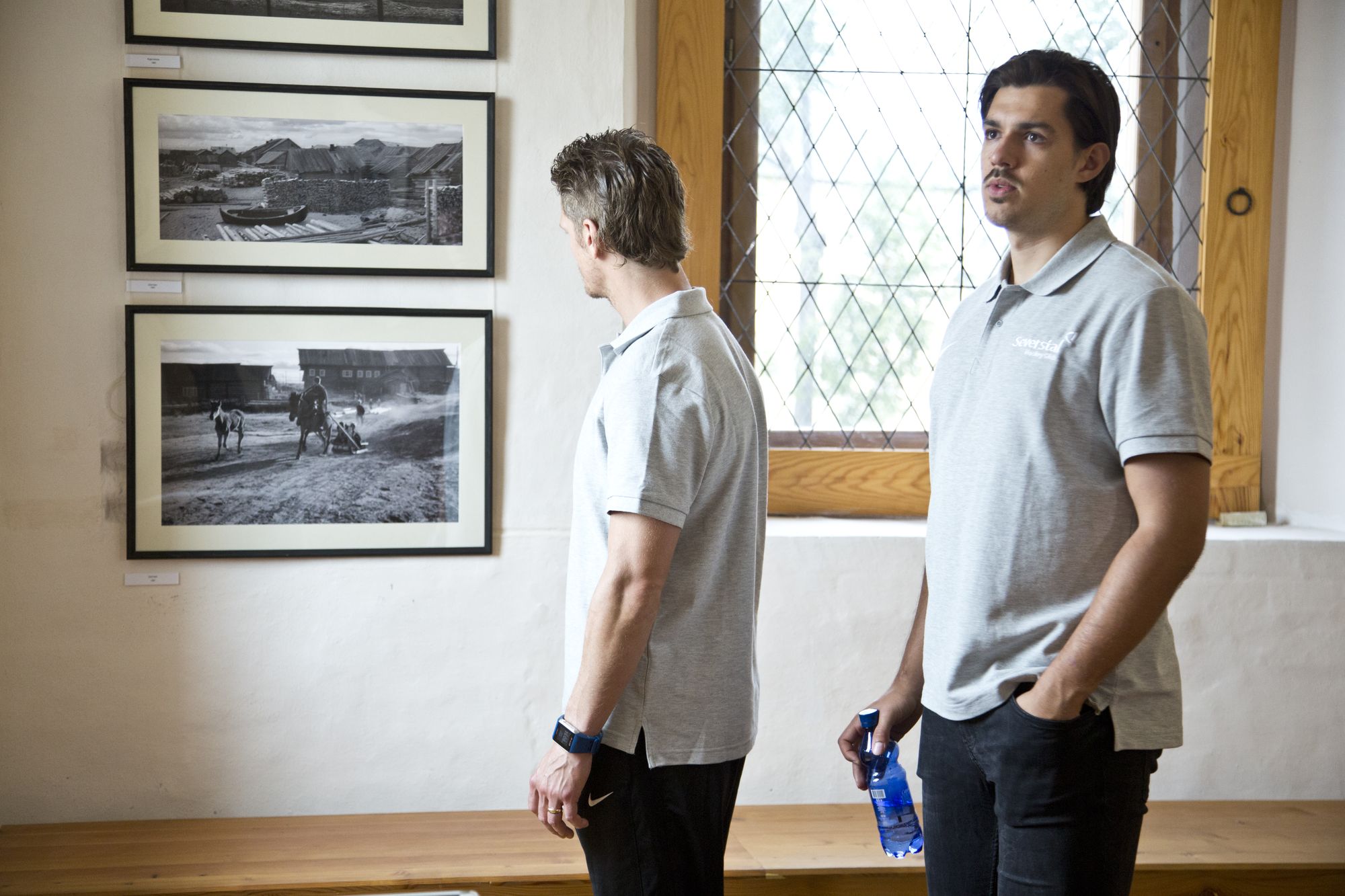 Крепких, высоких ребят заметили сразу. Молодые люди шагали по Соборной площади, привлекая внимание горожан. «Это хоккеисты «Северстали». Они завершают предсезонную подготовку к чемпионату 2017/18, который стартует выездной серией 22 августа», – рассказала музейщикам Алена Шилова, пресс-секретарь клуба «Северсталь». Спортсмены приехали в Кириллов 10 августа. «Этот день намного свободнее остальных», – признались хоккеисты. Отработав на утренней тренировке, вратарь Юлиус Гудачек, защитник Адам Мазур и нападающие Пётр Голин и Матей Странски отправились посмотреть на знаменитый Кирилло-Белозерский музей-заповедник.