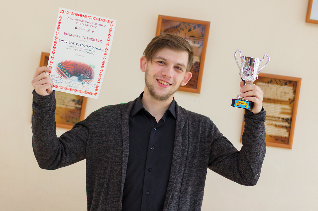 В прошлом году Антон Труфанов стал победителем VIII Международного конкурса исполнителей на баяне, аккордеоне и гармони «Аккордеон плюс».