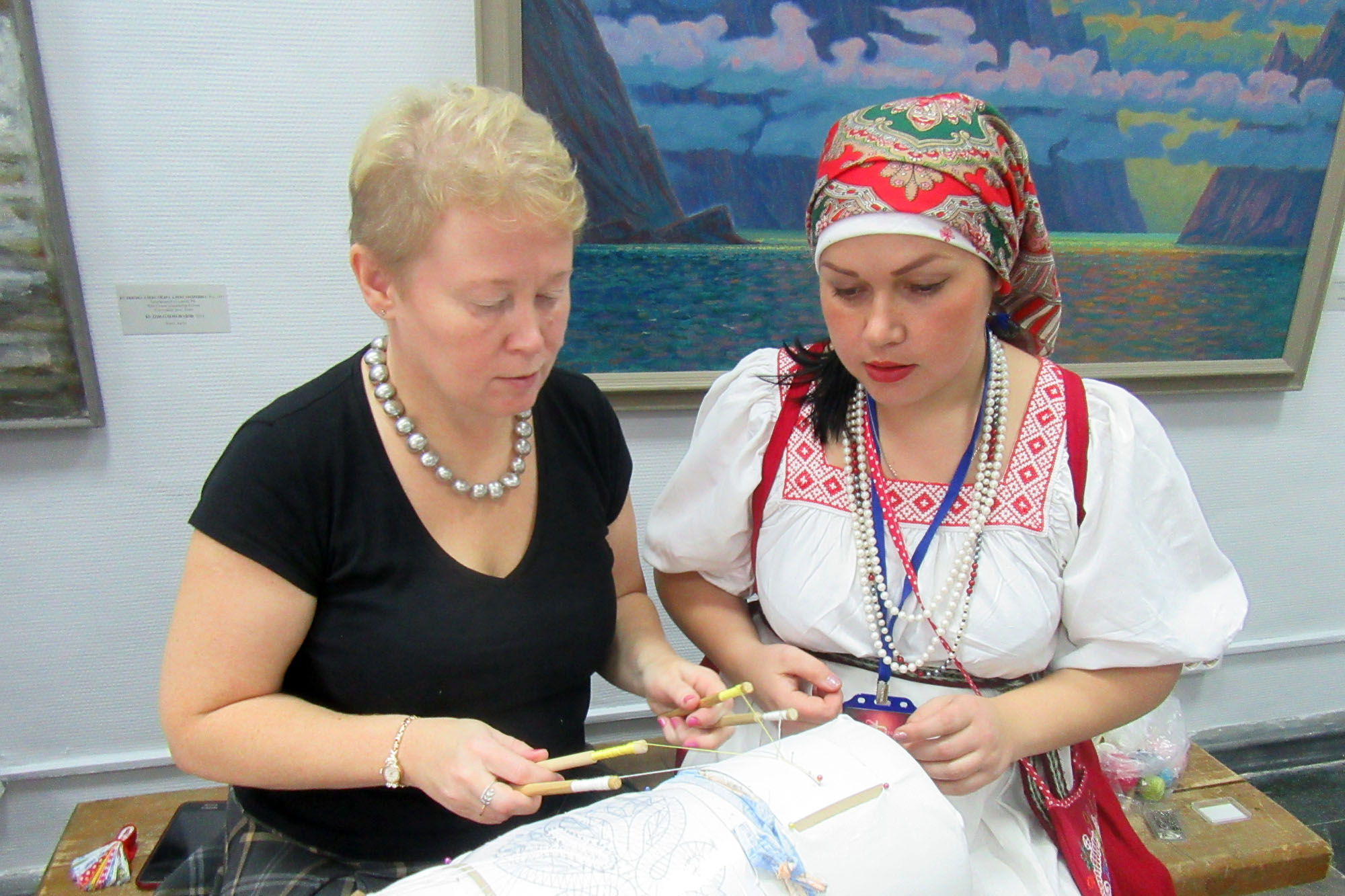 Заведующий просветительским отделом БОКМ Наталия Кузнецова провела для участников фестиваля интерактивную программу «В Белоозере широком щука дивная жила». Это познавательная, с гастрономическим уклоном программа раскрывает секреты традиций рыболовства на Белоозере: как, когда и чем ловили рыбу в Белом озере, чем славились белозерские рыбаки, какие секреты использовали местные хозяюшки для приготовления рыбы в русских печах. В дар мурманчанам Наталия привезла рецепты приготовления рыбных блюд по белозерским традициям, чем приятно удивила хозяев фестиваля. И как истинная вологжанка, Наталия не могла не показать коллегам главный бренд региона – вологодское кружево. Все желающие своими руками попробовали сплести самый простой кружевной элемент – плетешок.