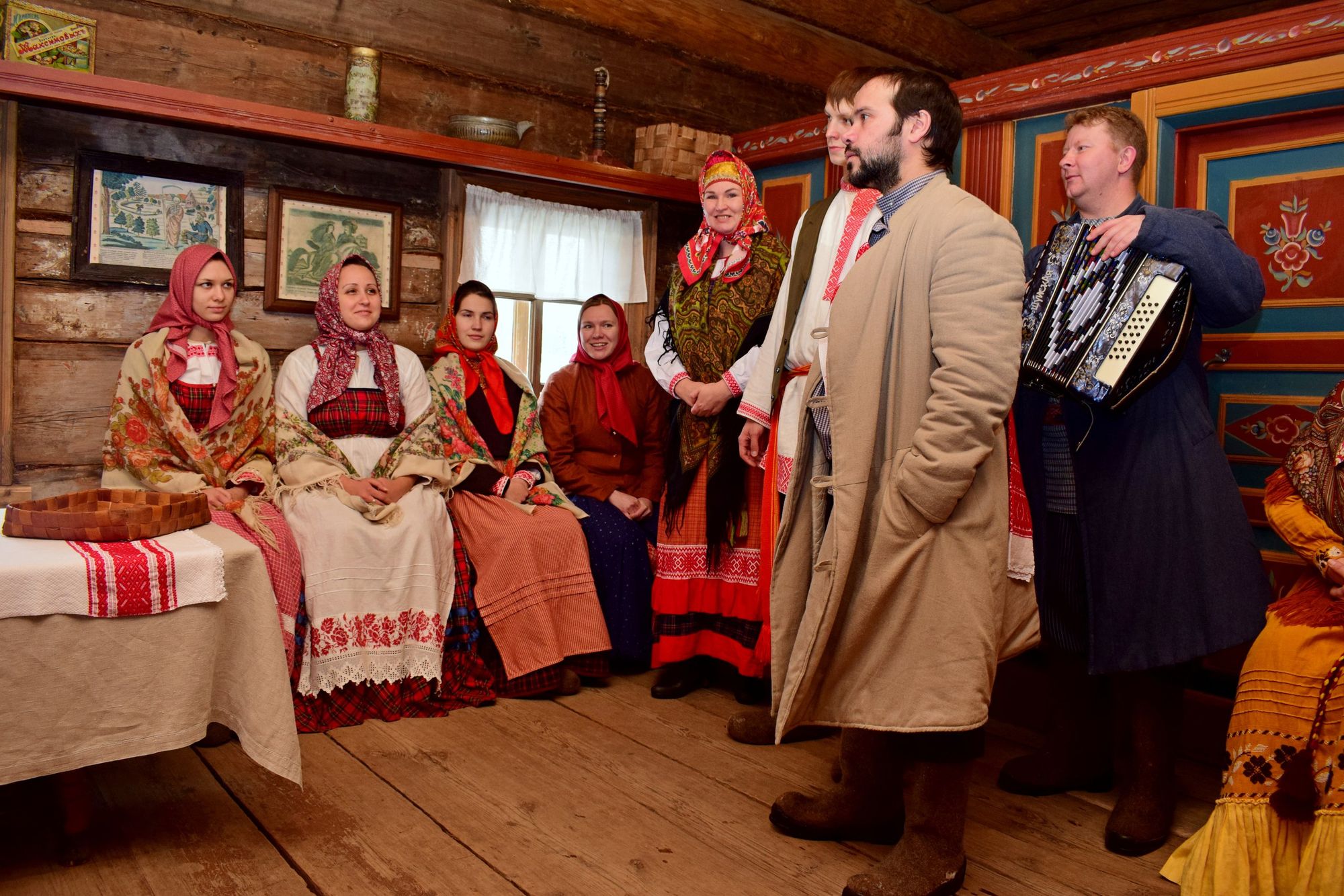 – интерактивные зарисовки «Без матери дитя – полный сирота» (социально-сельский сход); «Родина – мать, умей её защищать» (рекрутский обряд); «Дети – благодать наша» (вологодские сказки, присказки и потешки); «Кто на Казанскую женится, счастлив будет» (выкуп невесты).