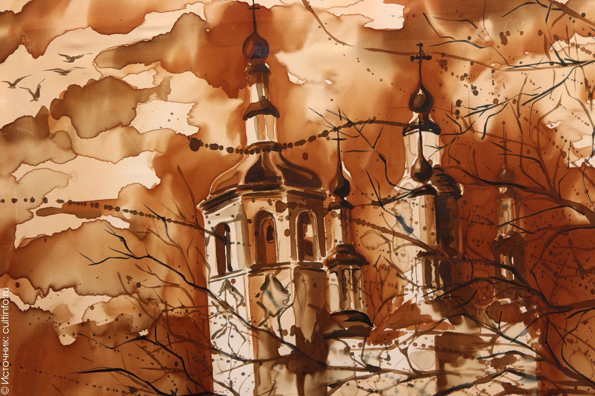 Главный редактор Елена Легчанова обожает пить кофе по утрам. А вот художник Роман Захаров нашел другое применение этому бодрящему напитку: он им... рисует! Убедитесь сами, посмотрев, как удивительно органично выглядят вологодский Софийский собор и колокольня в авторской технике Захарова «кофе на шелке». Выставка батика Романа Захарова откроется в субботу в музее «Мир забытых вещей». Тем, кто еще не бывал здесь, представится возможность открыть для себя самый атмосферный музей Вологды. «Мир забытых вещей» работает и в воскресенье.
