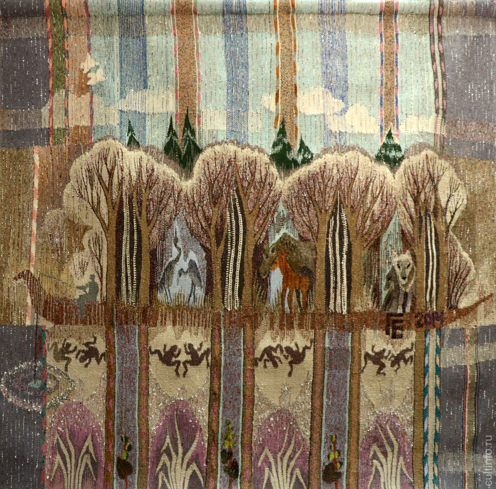 Екатерина Громцева работает с шерстью, шелком, льном. Льняные нити придают гобеленам прозрачность, невесомость и кружевную воздушность.