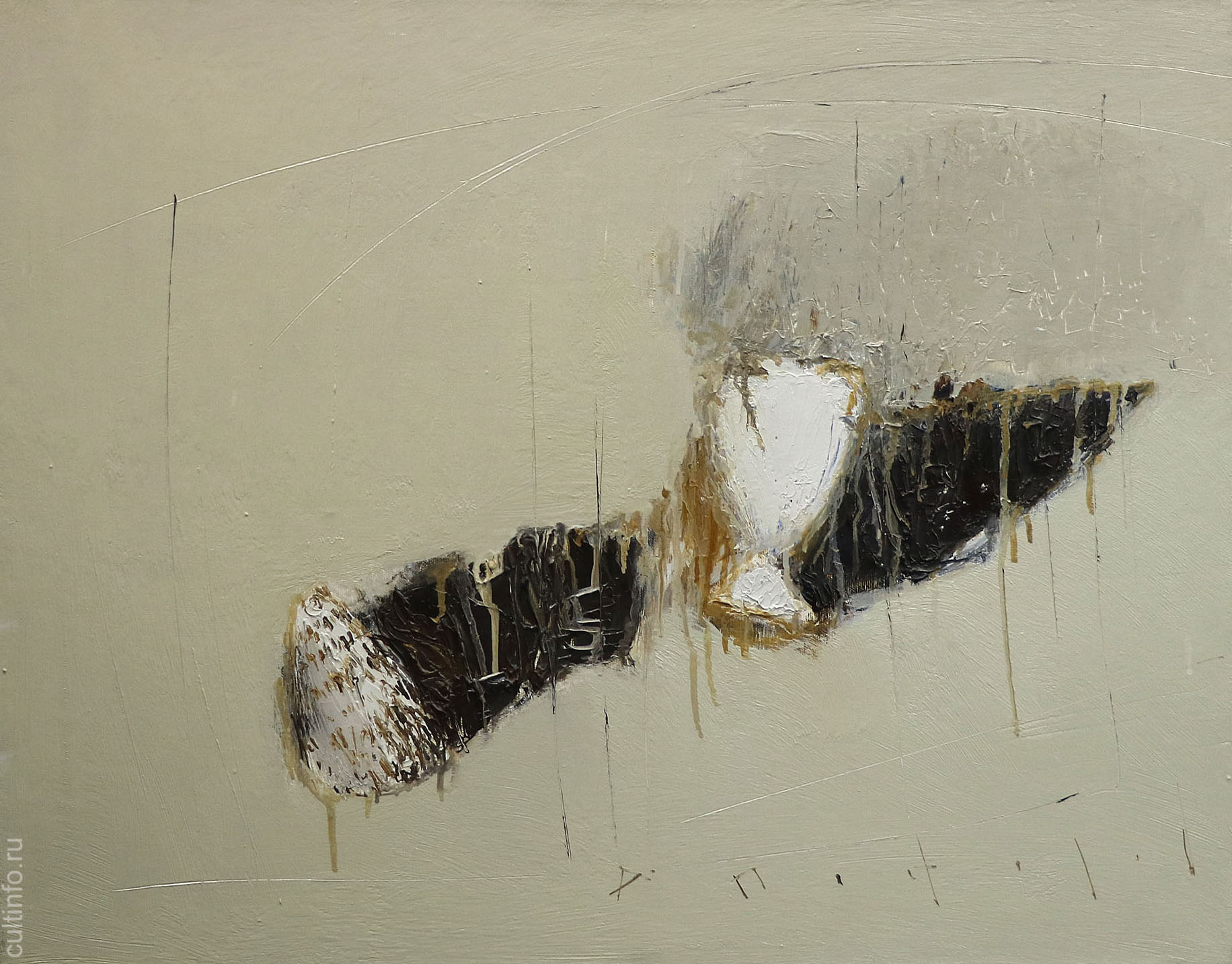 – Когда я увидела их дом, потрясающий вид из огромного панорамного окна на Ферапонтов монастырь, белое пространство Бородаевского озера, то пазлы стали понемножку складываться. «Вижу люблю» – это целое мировоззрение, метафора видения жизни художника, которое он выражает в пространстве полотна, в игре текстур, линий и слоев. Проходит эпоха, уходят люди, а вещи остаются. И только они могут рассказать новому поколению о времени, их породившем. Вещи безмолвны, но само их молчание начинает «рассказывать» свою собственную историю, когда пытаешься осмыслить их в рамках конкретной картины, разглядывая цветок, раковину или сосуд. Вещи обретают «сверхпредметное», символическое значение.
