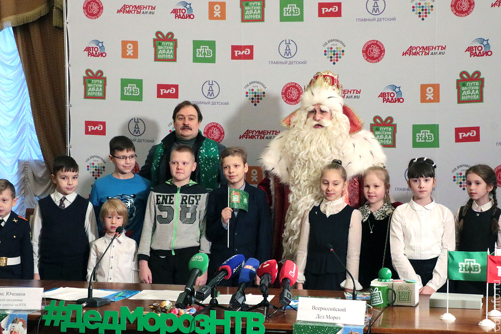 В Вологодском музее-заповеднике он дал пресс-конференцию – ответил на вопросы школьников и взрослых. Оказывается самым необычным подарком, о котором его попросили, был… русалочий хвост! Деду Морозу приходится исполнять самые невероятные мечты и желания, например, покататься на вертолете или пожарной машине, поуправлять тепловозом на детской железной дороге. Что он только не дарил! И щенков, и билет на балет, и мастер-класс по мультипликации. По словам зимнего волшебника, часто просят его и о том, что жизненно необходимо – о медицинских препаратах или устройствах, о компьютерах и книгах для слабовидящих детей.
