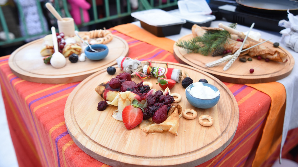 После сожжения чучела на Кремлевской площади стартовал «Баттл-блин». Шеф-повара пяти вологодских кафе и ресторанов готовили возле главной сцены три вида блинов: сытные, сладкие и с вологодским маслом. Кубок лучшего достался Илье Воронцову. Он опередил соперников не только в скорости приготовления, но и представил самые необычные рецепты. «Решил попробовать халву к блинам – ее нечасто используют в блюдах, – рассказал Илья. – Во время приготовления, конечно, волновался, но сумел сосредоточиться, и все получилось. Очень рад победе!»