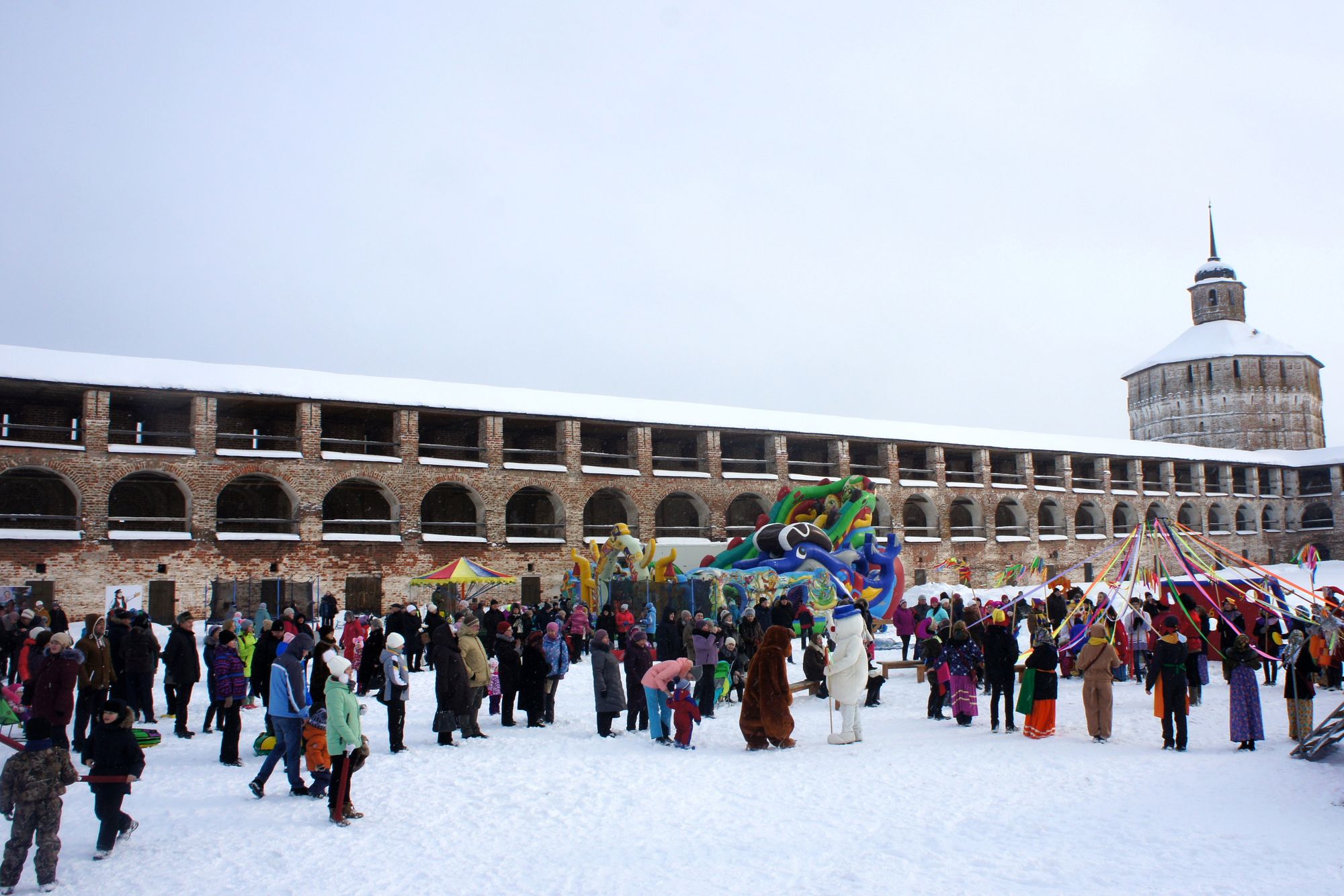 Масленица в Кирилло-Белозерском музее-заповеднике прошла с присущим ей размахом! На широкую ногу гуляли и кирилловчане, и гости города – катались на лошадях, участвовали в народных забавах и игрищах, шли стенка на стенку, перетягивали канаты и танцевали вместе с ансамблем «Череповецъ». Праздник объединил людей всех возрастов. В конкурсах артели кулачных бойцов «Буза» принимали участие даже бабушки с внуками. На ходулях ходили мальчишки и девчонки, а в катаниях по снегу на надувных шарах участвовали взрослые мужчины.