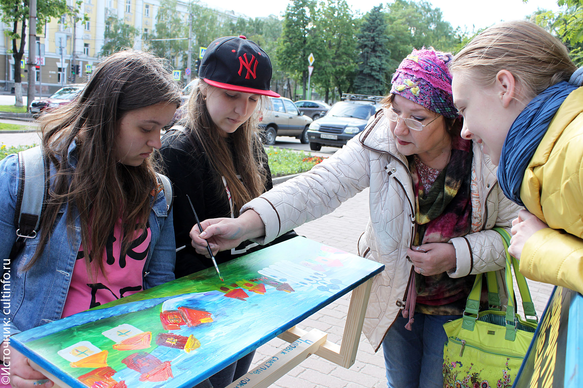 В акции приняли участие ребята из художественных студий города, Дворца творчества детей и молодежи, Центра традиционной народной культуры, Художественной школы им. В.Н. Корбакова, дети с ограниченными возможностями здоровья. Им помогали педагоги студии «Вологодские росписи».