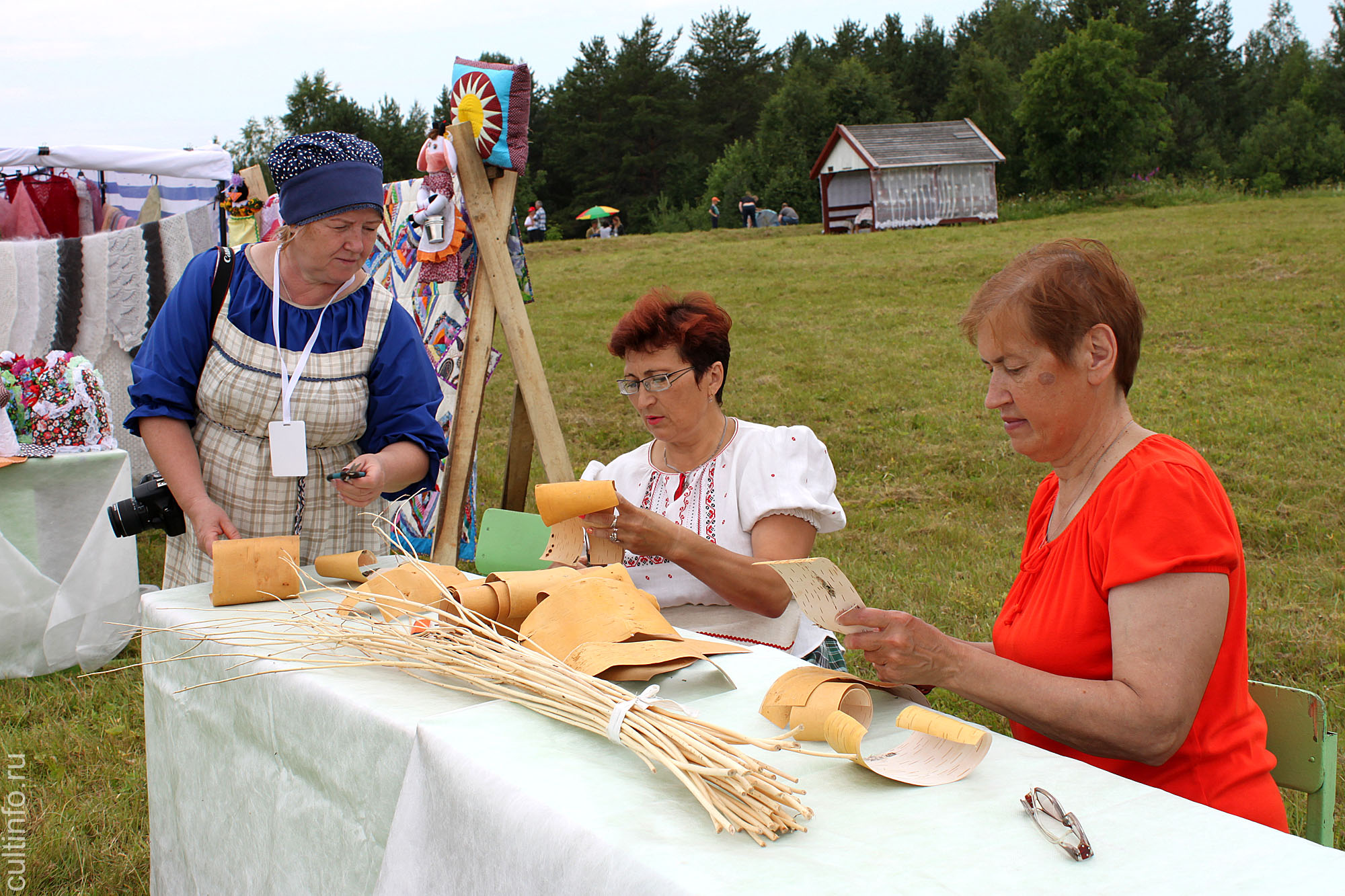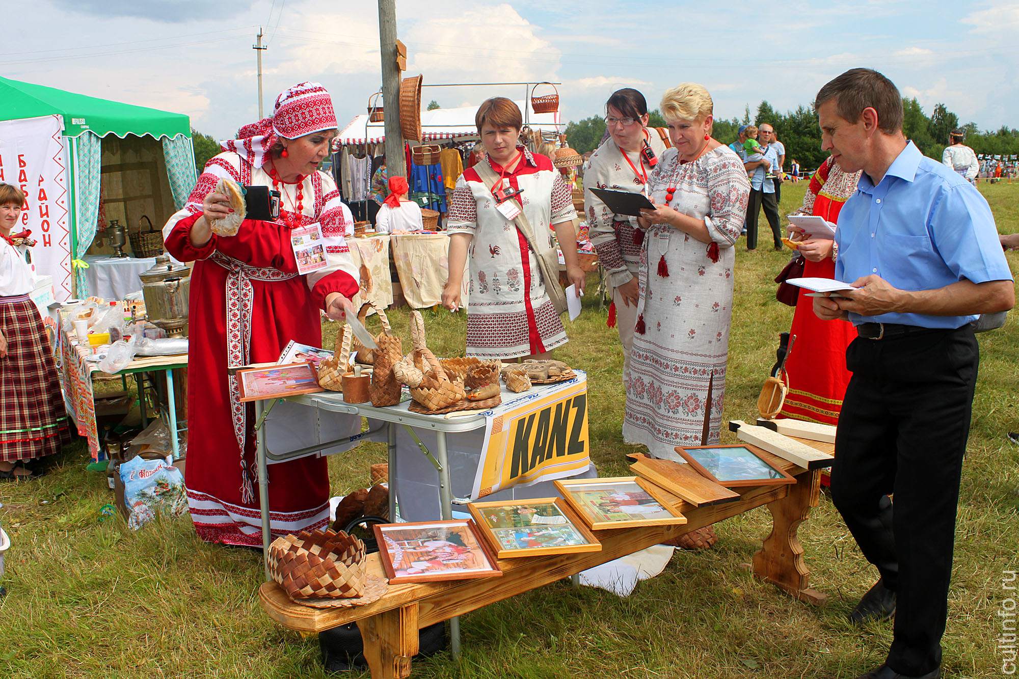 В течение всего дня работала выставка-ярмарка изделий мастеров народных промыслов и ремесел, художественно-прикладного творчества. Изделия из лозы и бересты, народные куклы, предметы домашнего обихода из дерева, вязаные изделия и многое другое могли приобрести гости фестиваля в качестве памятного сувенира.
