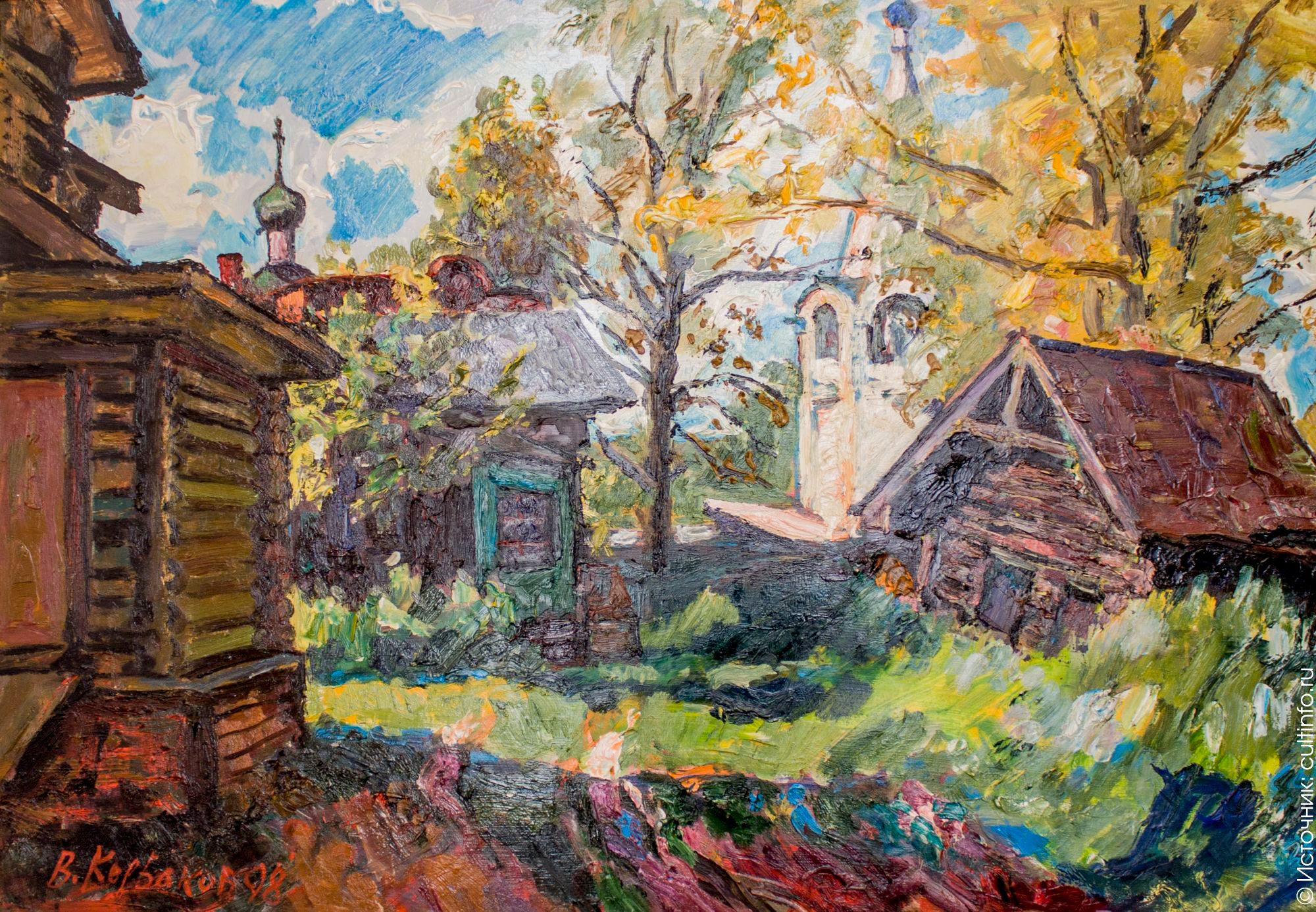 Первые пейзажи Вологды появились у Корбакова еще в 1960-е годы, во время учебы в Суриковском институте. Владимир Николаевич совершал постоянные пешие прогулки с этюдником по родному городу. Ему был знаком почти каждый его уголок. Городские пейзажи художник писал круглый год, поэтому среди живописных работ этого периода – «Вологодский кремль зимой», «Майский холодный день», «Вологда осенняя», «Над рекой Вологдой». Уже в ранних произведениях ярко проявился колористический дар Корбакова, и зародилась фактурность его холстов, впоследствии ставшие визитной карточкой живописца. Позднее были написаны такие живописные произведения, как «Вологодский дворик», «На Вологда-реке», «Улица Батюшкова в Вологде».