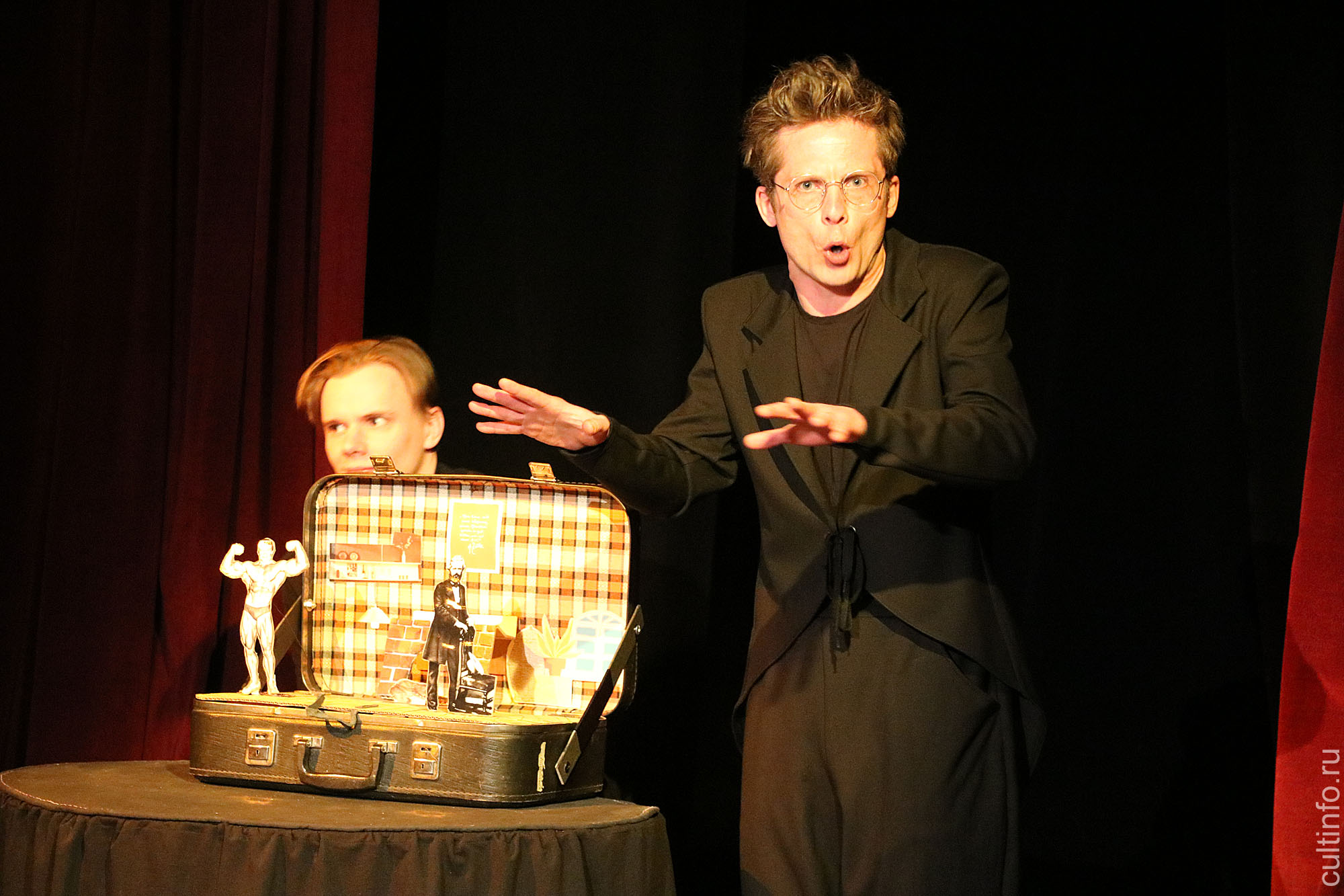 Премьеру спектакля «Страшные приключения Йогана Унферцагта» представили в минувшие выходные два актера Вологодского театра для детей и молодежи – Андрей Камендов и Анатолий Макаровский.