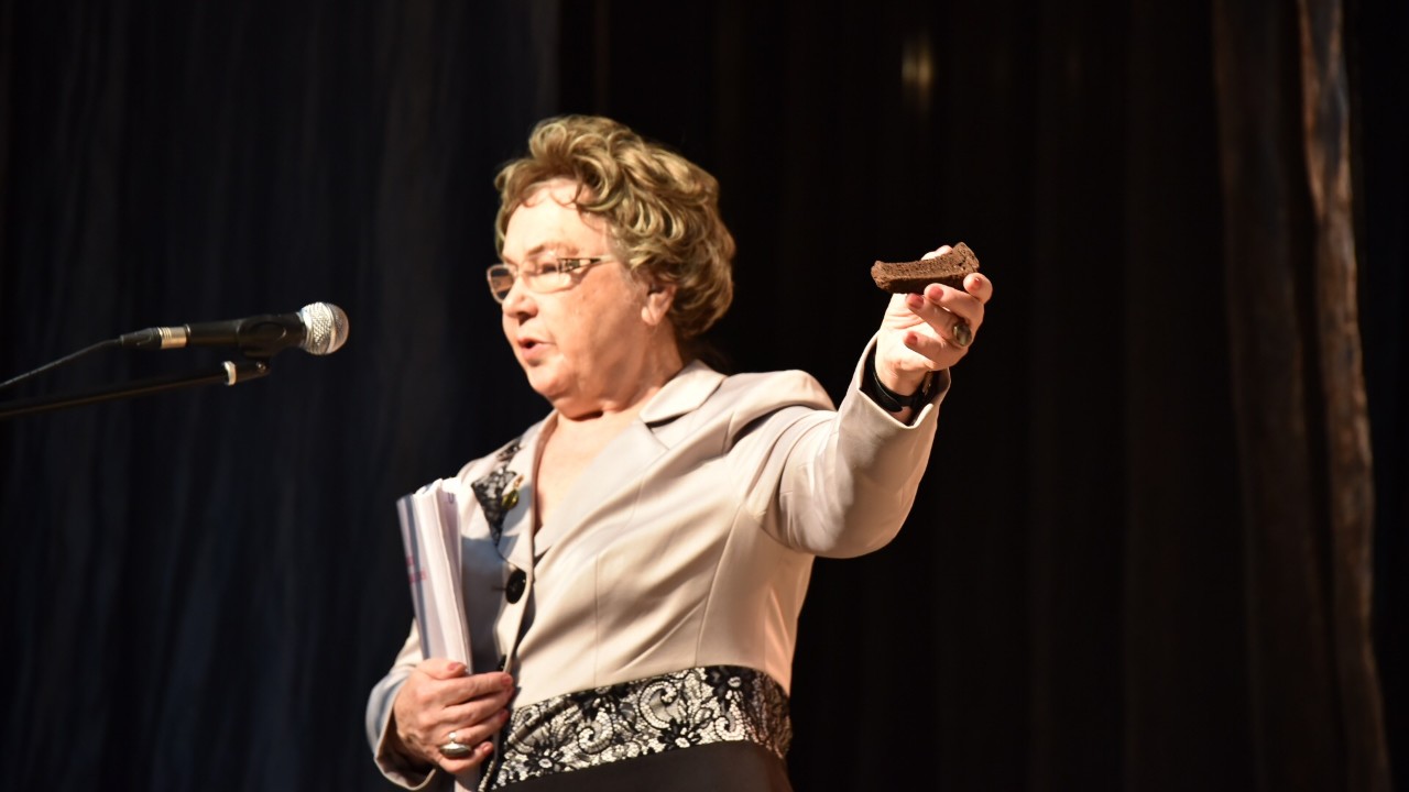 Председатель городской организации «Жители блокадного Ленинграда» Ольга Груздева прожила почти год в блокадном Ленинграде и была эвакуирована в Вологду в четырёхлетнем возрасте. Она поделилась воспоминаниями тех страшных дней, которые врезались в детскую память: «Бомбы падали, под обстрелами гибли тысячи ленинградцев, не было воды, электричества, тепла. Еще в начале войны немцы разбили Бадаевские склады с запасами продовольствия. Масло, патока текли по асфальту. Истощенные ленинградцы срезали эту сладкую землю и ели…». Ольга Сергеевна показала 125-граммовый кусочек хлеба из Музея обороны Ленинграда, который стал символом тягот блокады. Выпеченный из опилок, травы, клея, с небольшим содержанием муки, он составлял суточную норму, введенную для жителей осажденного города с ноября 1941 по февраль 1942 года. Снятие блокады 27 января 1944 года стало спасением для ленинградцев.