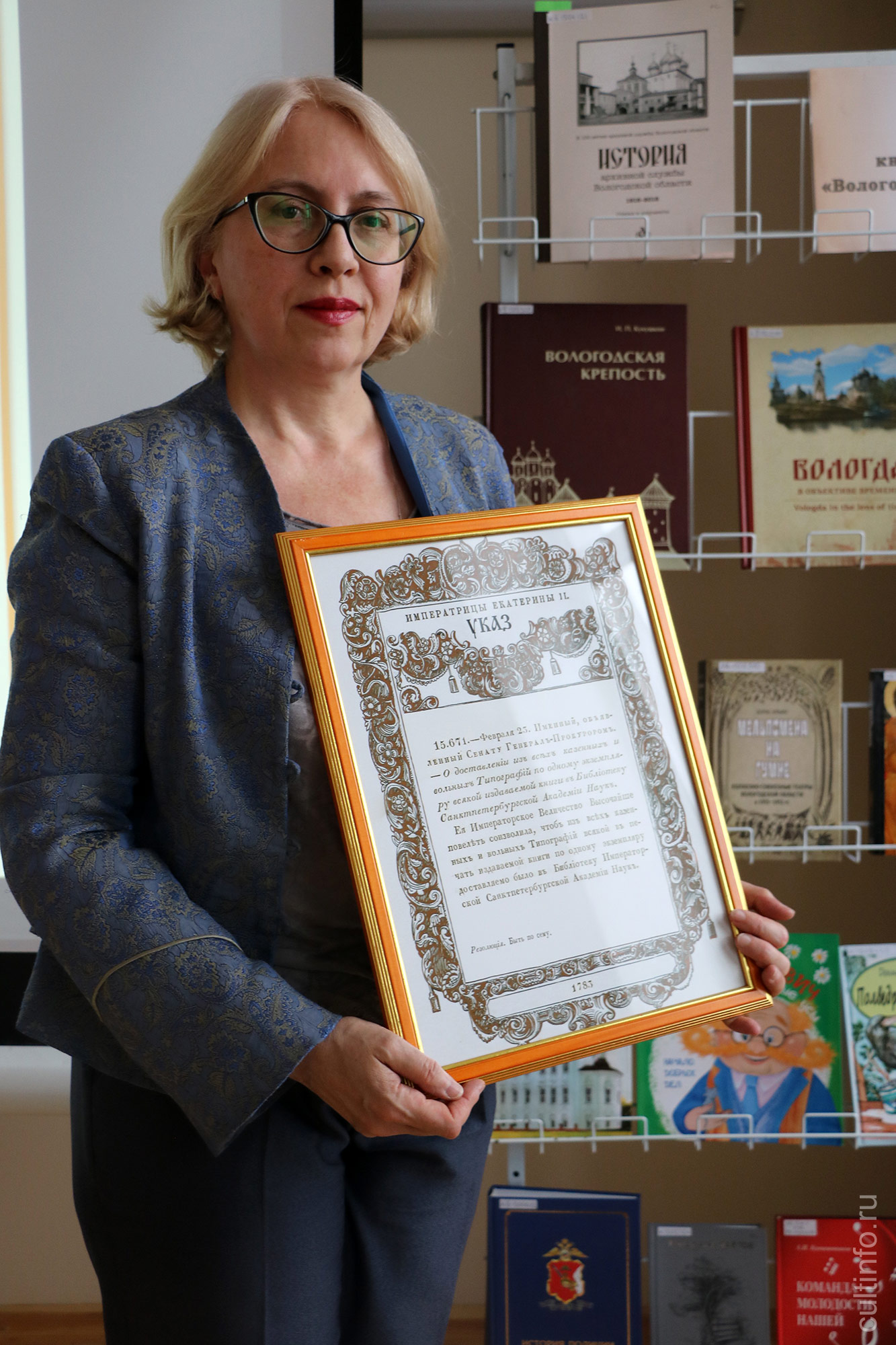 Но бóльшую часть из 622 изданий, представленных на выставке, занимают книги, посвященные истории и искусству Вологодской области, среди них – «Вологодская крепость» И. Кукушкина, «Вологда в объективе времени» Ф. Суханова и О. Зажигина, «Народные художественные промыслы» А. Глебовой, Е. Васильевой, «Старинная Устюжна» Е. Воротынцевой, «Александр Панкратов» Н. Мелёхиной, «Кирилл Белозерский. Памятники с редкой иконографией», «Черепане и черепанки Северных Афин» М. и К. Рыбниковых, «Застывшие в граните» И. Дьякова и Ю. Щекотовой и многие другие.