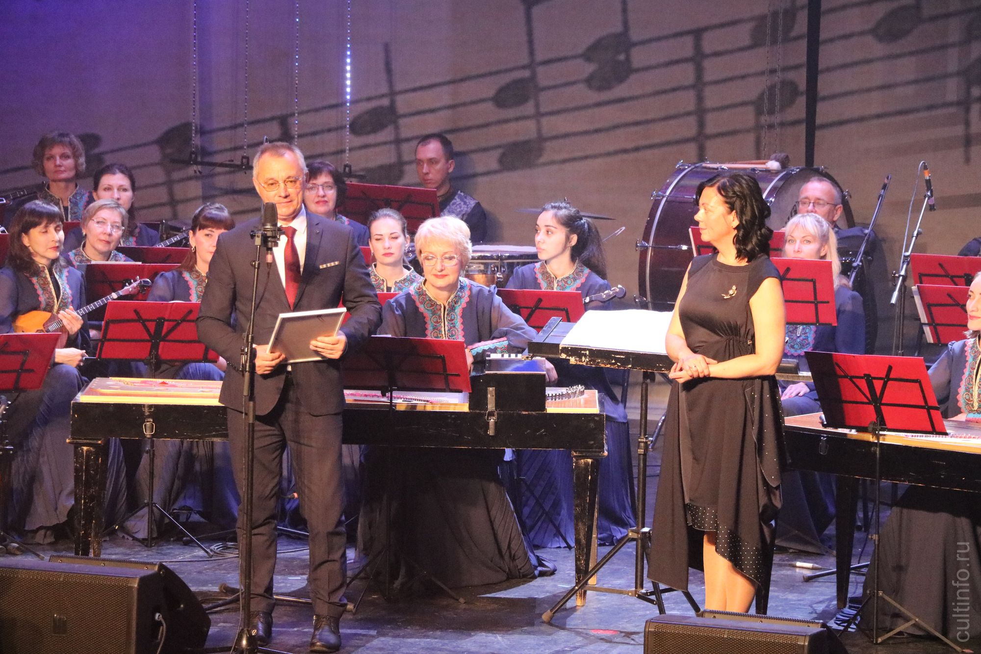 Сам концерт стал настоящим парадом филармонических звезд. Первое отделение на сцене безраздельно властвовал Губернаторский оркестр русских народных инструментов под управлением Галины Перевозниковой. Вместе с ними выступали солисты Мужского хора, а также приглашенные на юбилей московские артисты – солисты театра «Новая опера» Олег Шагоцкий и Виктория Шевцова. 2019 год – год юбилейный и для выдающегося композитора Валерия Гаврилина, который на 5 лет старше филармонии, носящей его имя. Поэтому не удивительно, что гаврилинская тема красной нитью прошла по всему гала-концерту. Отрывки из его балета «Дом у дороги» исполнил ансамбль песни и танца «Русский Север», его произведения прозвучали и в исполнении приезжих гостей. Под знаменитую гаврилинскую «Шутку» некоторые из зрителей не выдержали и пустились в пляс прямо в проходах концертного зала, Олег Шагоцкий присоединился к ним, а руководитель ГОРНИ Галина Перевозникова, недолго думая, последовала указаниям песни: скинула «туфли узкие» и продолжала дирижировать босиком.