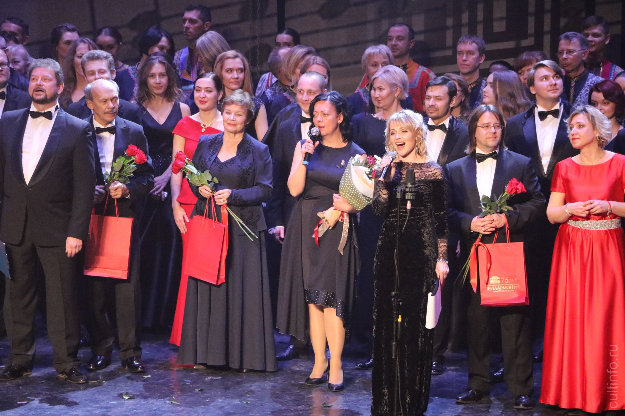 С экрана на сцене в ходе гала-концерта звучали слова поздравления от людей, тесно связанных с филармонией дружбой и сотрудничеством. Видеообращение записала вдова Валерия Гаврилина Наталья Евгеньевна, теплые слова адресовали Юрий Башмет, Сергей Жилин, Михаил Турецкий. Конечно, вспомнили и основные вехи в истории филармонии, вспомнили, когда и как она была образована – между прочим, это был разгар Великой Отечественной, 1944 год, и основу творческого коллектива тогда составили эвакуированные из блокадного Ленинграда. Чествовали на концерте и ветеранов филармонии, вспоминали тех, кто много лет верой и правдой служили музыкальному искусству Вологодчины.