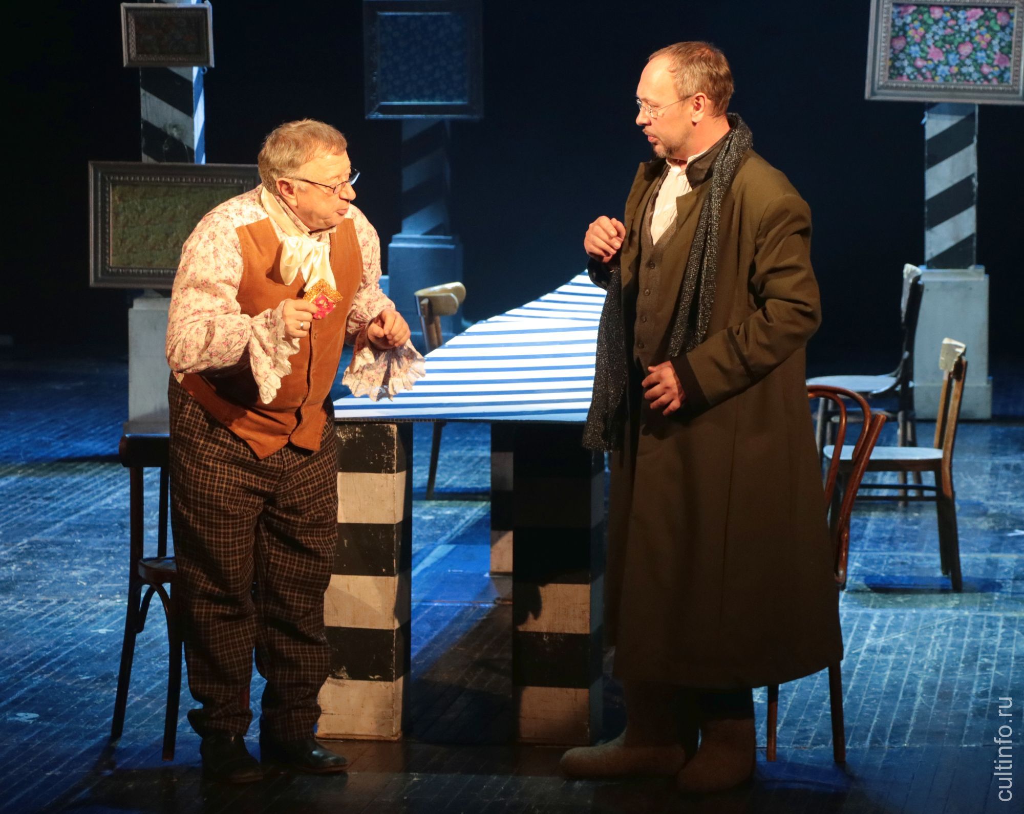 Спектакли для показа в Вологде выбирались по нескольким критериям. Нужно было учесть параметры и технические возможности сцены, но главное в выборе спектаклей – представить разноплановый репертуар театра, показав возможности труппы и заинтересовав разных зрителей.
