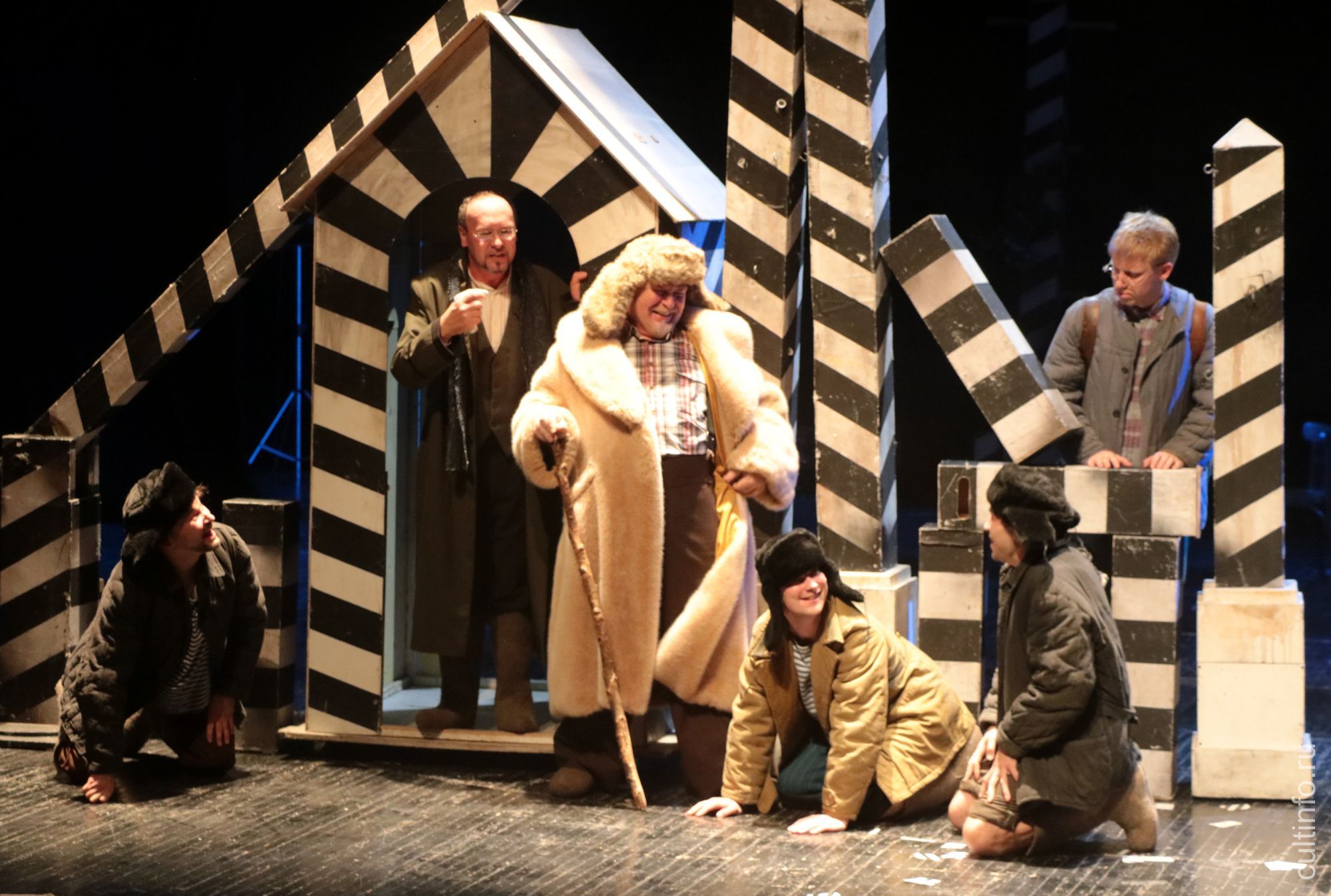Зрителями «Мертвых душ» стали в основном вологодские старшеклассники, пришедшие познакомиться с новой интерпретацией текста из школьной программы. У вологодского Театра для детей и молодежи есть свой собственный спектакль по поэме Гоголя – «Дорога», и интересно было сравнить эти две постановки, действительно очень разные. «Мертвые души» из Твери поставлены по инсценировке Михаила Булгакова, в которую включены фрагменты текста поэмы согласно с режиссерским видением Натальи Лапиной. Гоголевские герои узнаваемы и вместе с тем выглядят совершенно по-новому: например, Чичиков старается быть тихим и неприметным, а его кучер Селифан неожиданно интеллигентен – он выполняет в спектакле роль ходячей энциклопедии, успевая по ходу дела комментировать устаревшие слова, обращаясь к залу. Подчеркнуто комедийны массовые сцены, служащие «фоном» для путешествия главного героя в поисках мертвых душ, а декорации к спектаклю, при всей их условности – это разные вариации темы верстовых столбов и шлагбаумов – словно подчеркивают идею жизни-пути. В Твери, по словам артистов, этот спектакль очень любят, хотя он идет на сцене больше 10 лет.