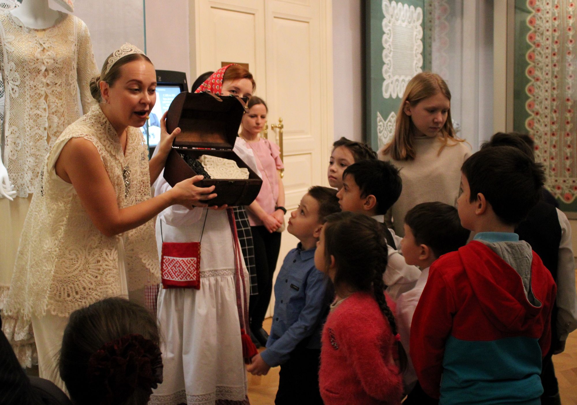 В «Новогоднее приключение в кружевной стране» в минувшую пятницу отправились ребята из двух детских домов Вологды. В экспозиции Музея кружева юные гости встретили сказочных персонажей, поучаствовали в активных играх и зажгли ёлочные огни.