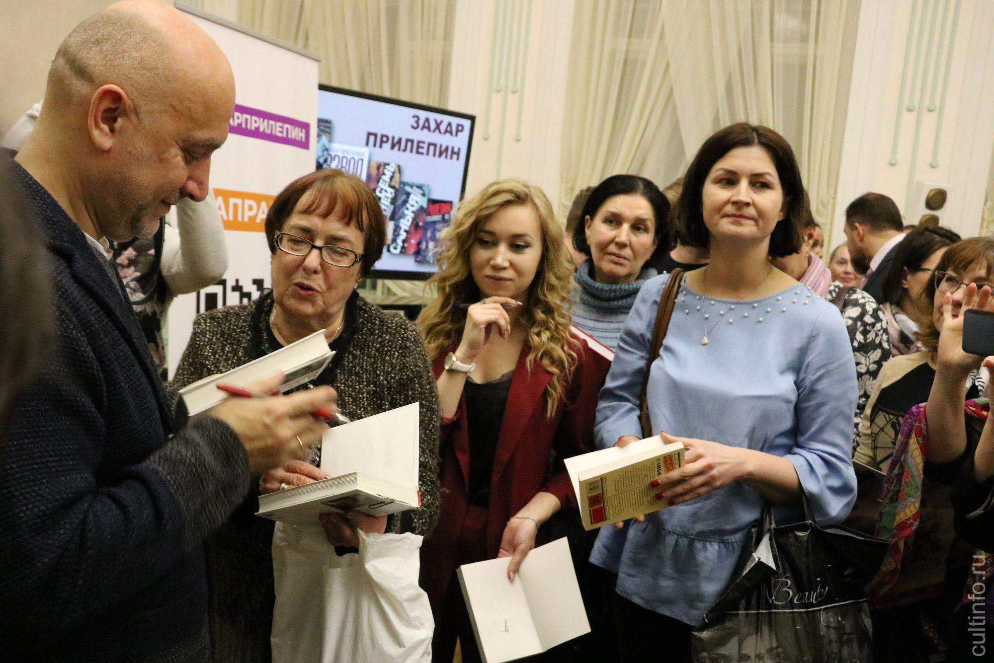 Вечером того же дня в Вологодской областной библиотеке состоялась встреча Захара Прилепина с читателями: как и шесть лет назад, когда писатель приезжал в Вологду, большой зал до отказа заполнили почитатели его таланта. Директор ВОУНБ Татьяна Буханцева напомнила о литературных регалиях гостя: Захар Прилепин – обладатель премий «Национальный бестселлер», «Супернацбест», «Ясная поляна» и Всероссийской литературной премии «Большая книга». Книги Прилепина переведены на 25 языков. В 2015 году его роман «Обитель», победитель премии «Большая книга», признан самой читаемой книгой в библиотеках Москвы, а в 2017 году он оказался самым упоминаемым в СМИ писателем. Захар Прилепин выступает как публицист и журналист – ведет телепрограмму «Уроки русского».