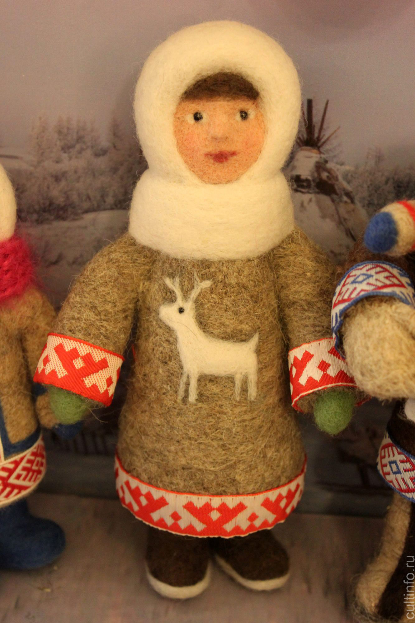 Большое значение в традиционной культуре ненцев имеют игрушки. Своей матерью-прародительницей они считали птицу, поэтому брали для изготовления кукол клюв (на выставке представлено несколько таких удивительных экземпляров). Как пояснила методист центра «Северная Фиваида» Анна Сидоренко, игры с куклами считались пророческими, по поверьям, они влияли на будущее семейное счастье и плодовитость. Поэтому к ним относились очень бережно, наряжали в меха и костюмы из натуральных тканей, шерсти.