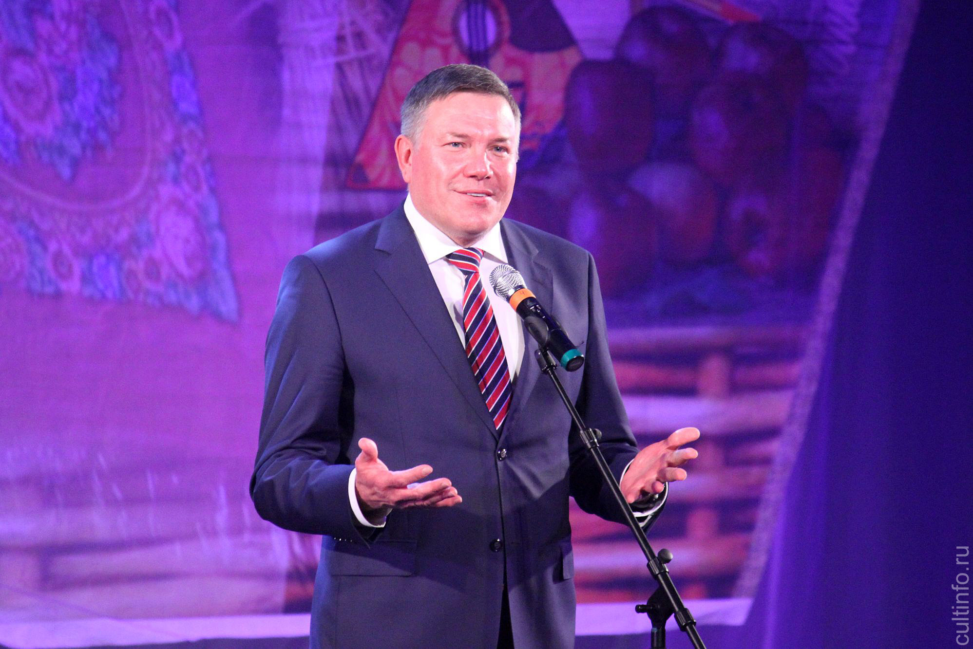 По традиции праздничный концерт собрал в зале «Русского дома» представителей практически всех учреждений культуры области. С профессиональным праздником работников культуры поздравил глава региона Олег Кувшинников: «Вологодская культура уникальна и многообразна. Я неоднократно бывал в районах на праздниках и различных мероприятиях и видел, с какой любовью и радостью вас встречают зрители. Хочу сказать слова огромной благодарности за ваш труд». Губернатор Вологодской области напомнил, что в этом году пройдут ремонты 26 домов культуры – по одному в каждом районе, а за пять лет реализации программы «Сельский дом культуры» отремонтируют порядка 130 ДК. Также для комфортного и безопасного передвижения творческих и спортивных коллективов для каждого муниципалитета из областного бюджета будет закуплен современный автобус.