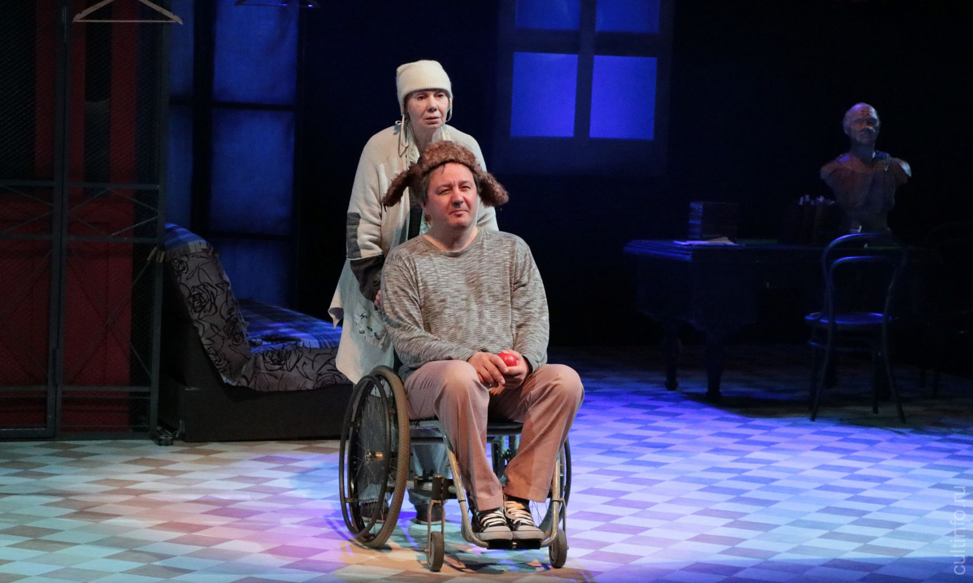 Эту историю режиссер, народный артист России Борис Гранатов выбрал не случайно: «Мне очень понравилась пьеса, она затрагивает целый спектр вопросов. Я думаю, спектакль не оставит равнодушным зрителя: кто-то посмеется, кто-то погрустит. В нашем мире нет чистого жанра – наша жизнь в каком-то роде веселый трагизм, поэтому в постановке есть что-то комедийное, есть что-то трагическое, мы определили жанр как комедию-мелодраму. В нашей работе все строится на ощущении от пьесы, и оно менялось в ходе репетиций. Например, сначала мы хотели, чтобы у каждого героя была песня бардов 1960-70-х годов, потому что молодость одного из персонажей – Владимира – пришлась на этот период. Но на репетициях эта идея отпала, и мы взяли современную песню, знакомую сегодняшней молодежи, потому что главной героине Жене – 18 лет, она ближе к нашему зрителю». Спектакль поставлен к юбилею актрисы театра – заслуженной артистки РФ Валентины Бурбо.