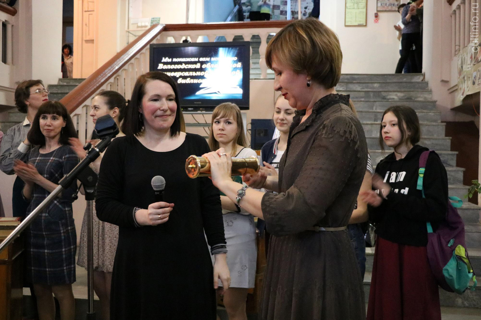 Всего в 20 минут организаторы уместили 100-летнию историю библиотеки, но успели показать основные вехи – от первых книг из дворянских библиотек, читательской работы по разным организациям, трудностей военного времени и очередей за самыми популярными книгами до наших дней. Главным событием стала акция «Капсула времени», в которую заключили послание читателям XXII века – откроют ее только в 2119 году. «Нам бы очень хотелось своими глазами увидеть вас, наших потомков из XXII века, увидеть нашу большую библиотеку и убедиться в том, что место, где хранятся уникальные книжные сокровища Вологодчины, где сегодня пульсирует напряженная интеллектуальная жизнь, – наша библиотека – существует спустя сто лет, живет и обновляется. Нам сложно представить сейчас вас, читающих это письмо, реальность меняется стремительно и кардинально, тем не менее, надеемся, что главная библиотека родной Вологды XXII века развивается, сохраняя при этом атмосферу камерного уединения, душевного приюта, простой человечности. Верим, что библиотека все также занимает важное место в жизни людей», – с такими словами обратился коллектив библиотеки к читателям будущего. Капсула времени будет храниться в обновленном зале редких книг.