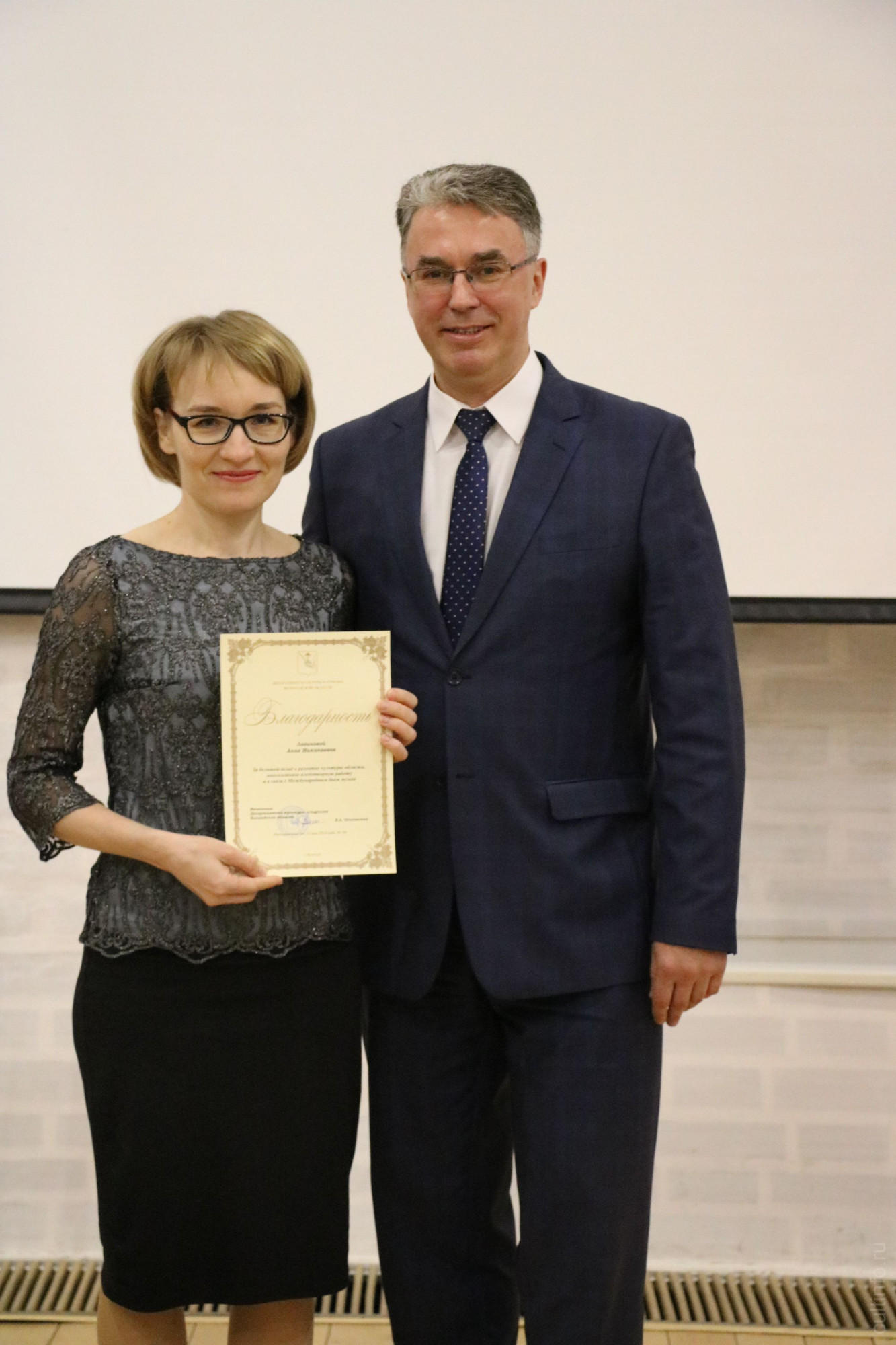 Благодарность главы города получила Людмила Кривоногова, старший научный сотрудник ВГМЗ. Благодарственным письмом главы отмечена Елена Лубенцова, заведующая художественным отделом ВГМЗ.