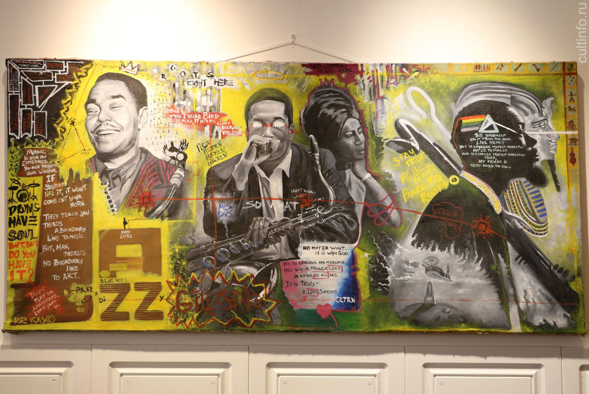 Дмитрий по образованию дизайнер, живописью занимается уже 14 лет. Чуть позже случилась еще одна большая любовь – к музыке. И всё это соединилось в творчестве. Если учесть, что один из любимых художников Дмитрия – Жан-Мишель Баския, то избежать экспрессии сложно – его яркие работы были похожи одновременно на граффити и наскальную живопись. Добавим к этому джазовые, блюзовые и рок-хиты, которые порой не выходят из головы месяцами и становятся якорями эйфории и радости, грусти и меланхолии. Названия композиций, строки из них, ассоциации, с ними связанные, мгновенно попадают на картины Дмитрия. В какой-то степени они универсальны – ну, например, кто-то говорит «Дюк Эллингтон», и вам сразу же приходит в голову «Caravan». Ассоциация абсолютно незатейливая для любителей джазовых стандартов – и в работе Каблукова вы ее тоже отыщете без труда. А есть, скажем так, личные признания, например, «Jay Dilla изменил мою жизнь». Выставка посвящена исключительно музыке как явлению, которое способно поднять тебя выше и которое при этом является повседневной, совершенно естественной частью собственной реальности.