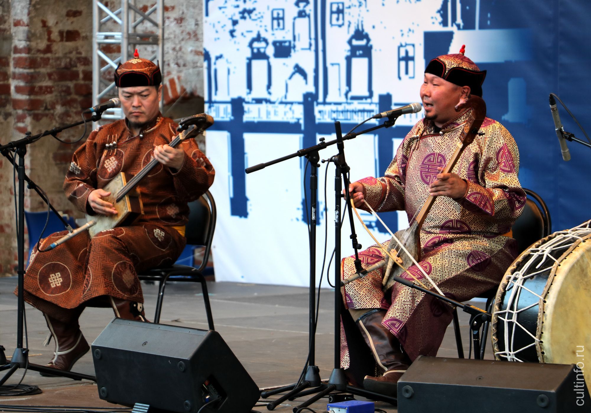 Необычно и завораживающе звучат и инструменты, на которых играют артисты. Например, Бады-Доржу Ондар исполнил соло на игиле. Тувинский игиль – древний струнный инструмент, корпус которого изготовлен из цельного куска древесины, выдолбленного в форме овального ковша и обтянутого кожей. Игиль имеет две струны из конского волоса, а звук, вызывающий в воображении картины степных просторов, извлекается смычком в форме лука. Созвучны ему и другие инструменты, например, кенгирге – барабан и шоор – флейта.