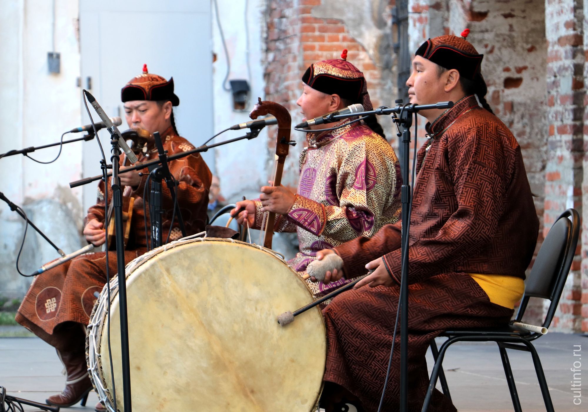 Горловое пение, или хоомей – техника пения с необычной артикуляцией в глотке или гортани, характерная для традиционной музыки народов Сибири, Монголии, Тибета и тюркских народов. Уникальность этого искусства в том, что исполнитель извлекает сразу две ноты одновременно, образуя своеобразное двухголосное соло. Аккомпанируя себе на традиционных музыкальных инструментах, сделанных из дерева и кожи, артисты погружают слушателей в атмосферу жизни кочевников-табунщиков, всё существование которых неразрывно связано с природой. В составе ансамбля – три ярких мастера горлового пения, хоомейжи, как их называют в Туве: Бады-Доржу Ондар, Аян-оол Сам и Аян Ширижик. Все они в совершенстве владеют этим древним искусством и на концерте продемонстрировали три стиля разных тувинского горлового пения.