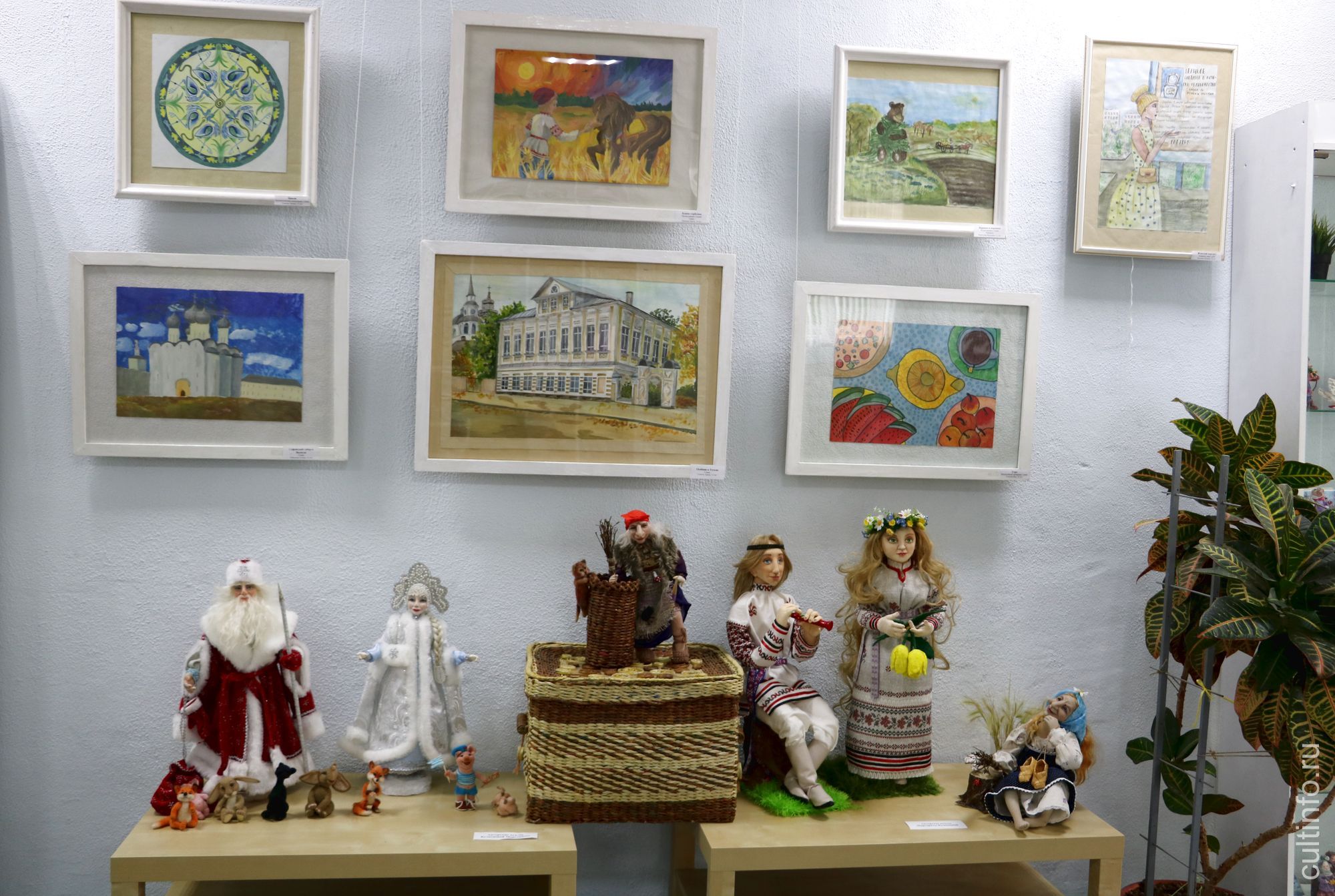 На выставке представлены и картины. Это работы Татьяны Шукшиной, которая рисует не просто красками: основа выполняется из разных видов круп – риса, манки, овсяных хлопьев, гречки, благодаря чему изображение приобретает тонкую фактурность. Также на выставке можно увидеть картины учащихся школы-студии изобразительного искусства «Палитра» НОУ ДО «Светлые знания».