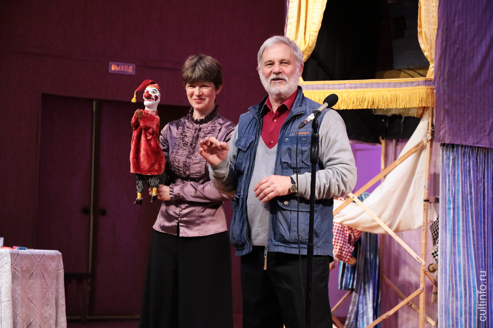 Наиболее оживленно было на мастер-классе руководителя театра «Бродячий вертеп» Александра Грефа, где он делился секретами петрушечного театра. «Бродячий вертеп» более 30 лет показывает публике народные кукольные представления, параллельно изучая традиции и особенности театра Петрушки. В феврале в ГИТИСе они открывают курс по петрушечному театру. Накопленным опытом «Бродячий вертеп» поделился и с участниками «Деревни – души России». Зрители увидели отрывок спектакля из репертуара «Бродячего вертепа», познакомились с его главным героем Петром Ивановичем. Тема лекции «История и современное состояние театра Петрушки» очень заинтересовала публику. Александр Греф рассказал, почему на протяжении веков Петрушка так популярен во всем мире, какие братья есть у него в разных странах и в чем загадка живучести этого персонажа. «Петрушка – не совсем человек, а хтонический персонаж – человек в момент его создания или появления из-под земли, мы называем его человек примитивный, первичный, досоциальный, – отметил Александр Греф. – И задача Петрушки как персонажа – встроиться в социум, этим он похож на ребенка. Он каждый раз нарушает правила, которые нам известны: мы понимаем, что так себя вести нельзя, а он этого не знает». Вместе с актрисой Еленой Слонимской Греф рассказал, как должен двигаться Петрушка на сцене, как устроен вертеп, чтобы актеру было удобно в нем играть, какие герои есть в историях про Петрушку, с помощью чего достигается тонкость и пронзительность голоса героя.