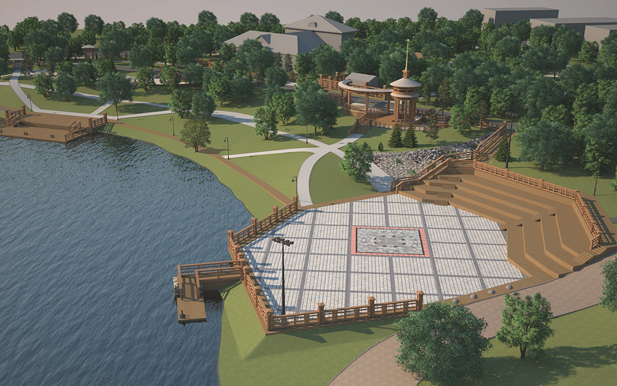 «Основным акцентом, градостроительной доминантой набережной станет ротонда с аркадой на видовой точке. Ротонда будет сделана с позолоченным галиотом (парусно-гребное судно, родственное галере) на шпиле в духе петербургского классицизма того периода. Галиот изображен на гербе Вытегры – здесь было много верфей, на которых строились такие суда и отправлялись в Санкт-Петербург», – добавил Маевский.