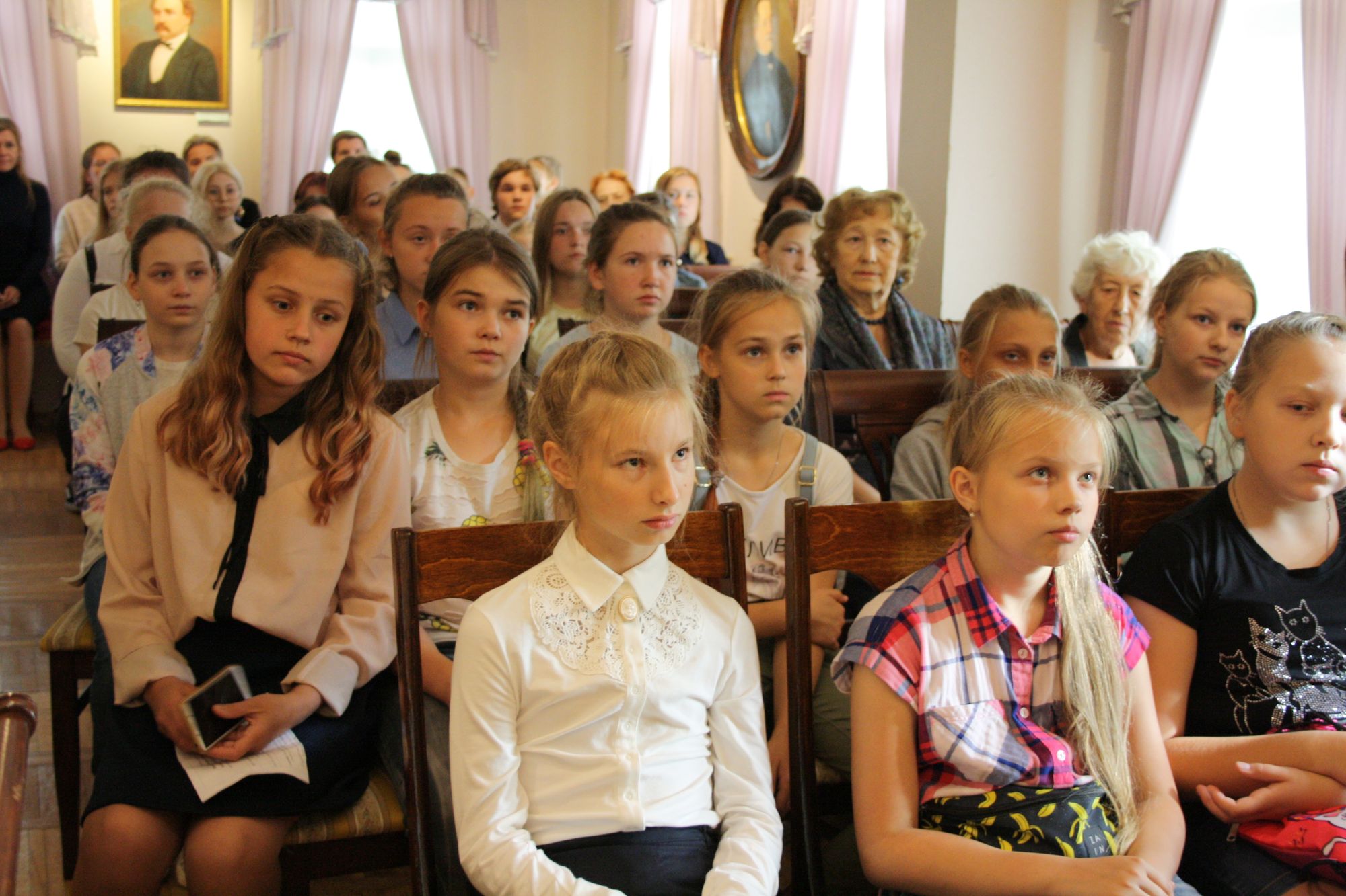 Перед началом церемонии ребята познакомились с натюрмортами 1920-х годов, авторами которых являются учащихся 5-7 классов семилетней школы № 3, и городскими пейзажами их учителя – Владимира Перова, известного вологодского художника. Юных гостей очень удивил тот факт, что все работы сделаны учениками обычной, а не специализированной школы. Елена Дзюба, инициатор и куратор выставки, рассказала, что уровень преподавания в начале XX века в Вологде был сравним с московским, а материалы настолько хорошего качества, что спустя 100 лет краски не потускнели. Также своим профессиональным мнением с ребятами поделились хранитель коллекции кружева и тканей Вологодского музея-заповедника Надежда Кутекина и заслуженный работник культуры РФ Ангелина Глебова.