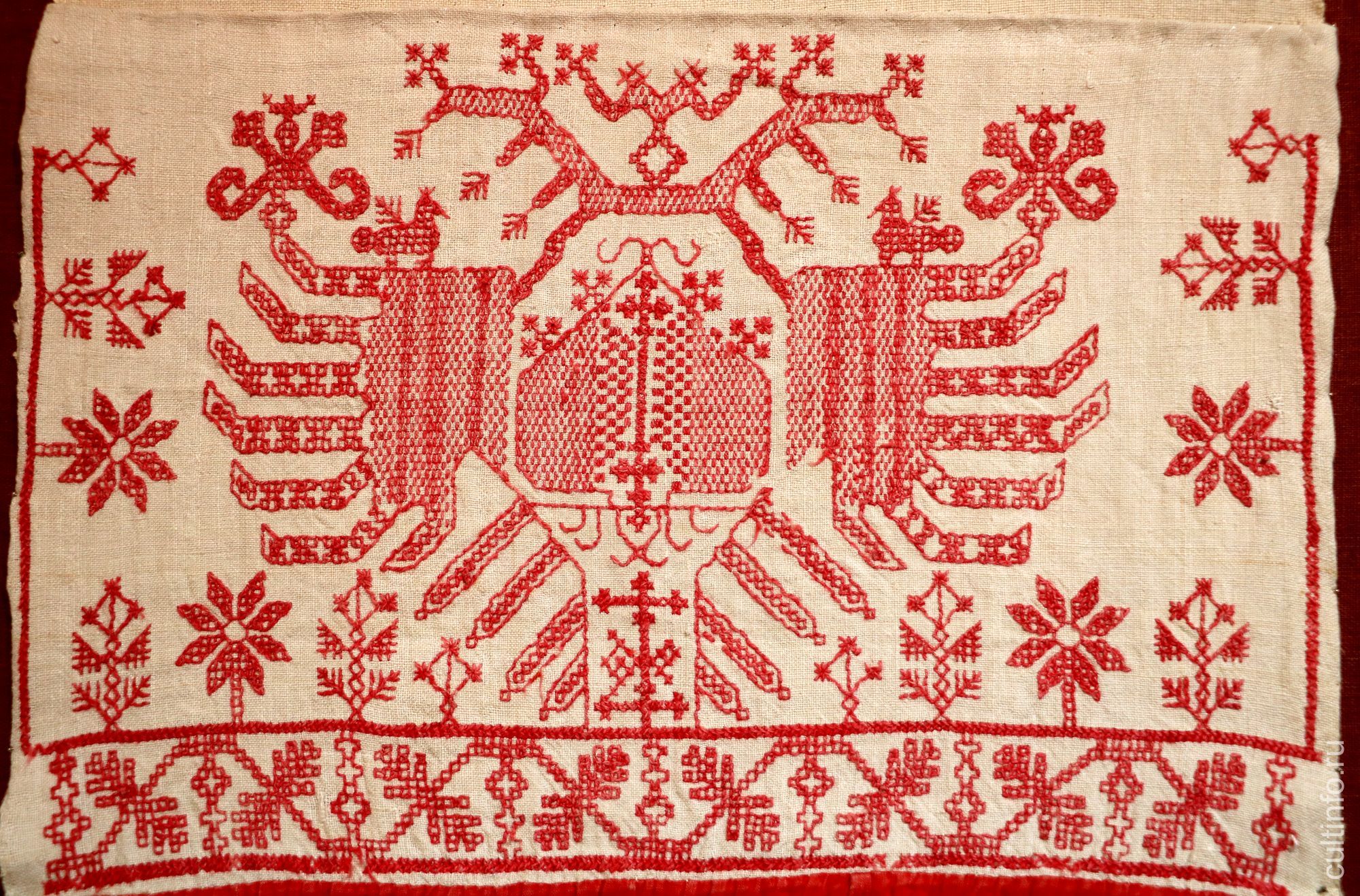 Выставка под таким названием объединила экспонаты Вологодского музея-заповедника, Белозерского областного краеведческого музея и Харовского историко-художественного музея. Это финальная экспозиция межмузейного проекта, посвященного традиционному народному искусству. Крестьянская мебель с росписью, прялки, кружево, вышивка с древними узорами-оберегами, женский народный костюм, в котором каждая деталь несет информацию о его хозяйке, – всё это можно увидеть в двух залах художественного отдела Вологодского музея-заповедника. Первая выставка проекта «Острова традиций» прошла в Харовске весной этого года, ее темой стали женские ремесла: ткачество, кружевоплетение, вышивка, народная кукла. Вторую выставку принял Белозерск – там показывали вологодские росписи.