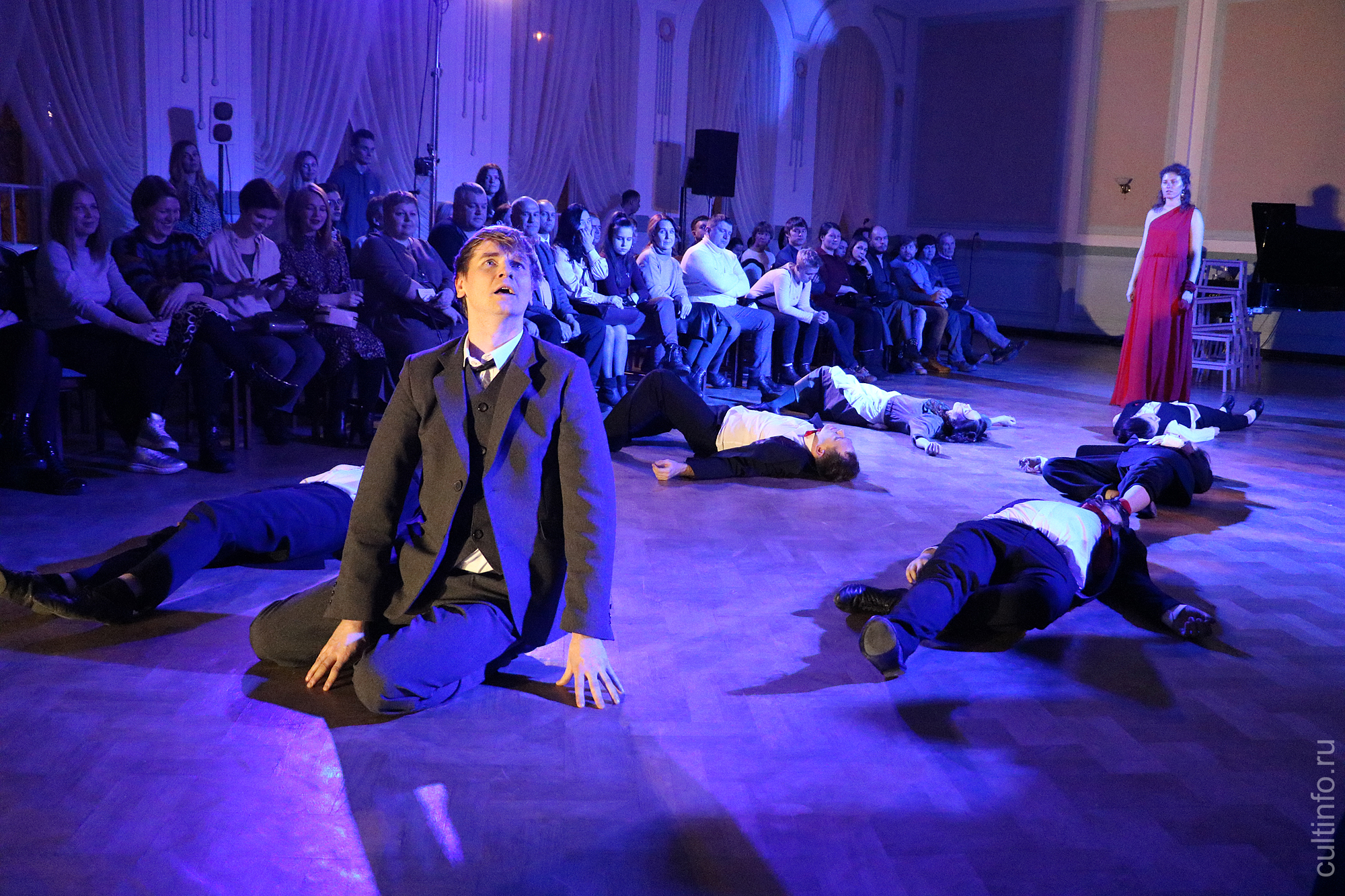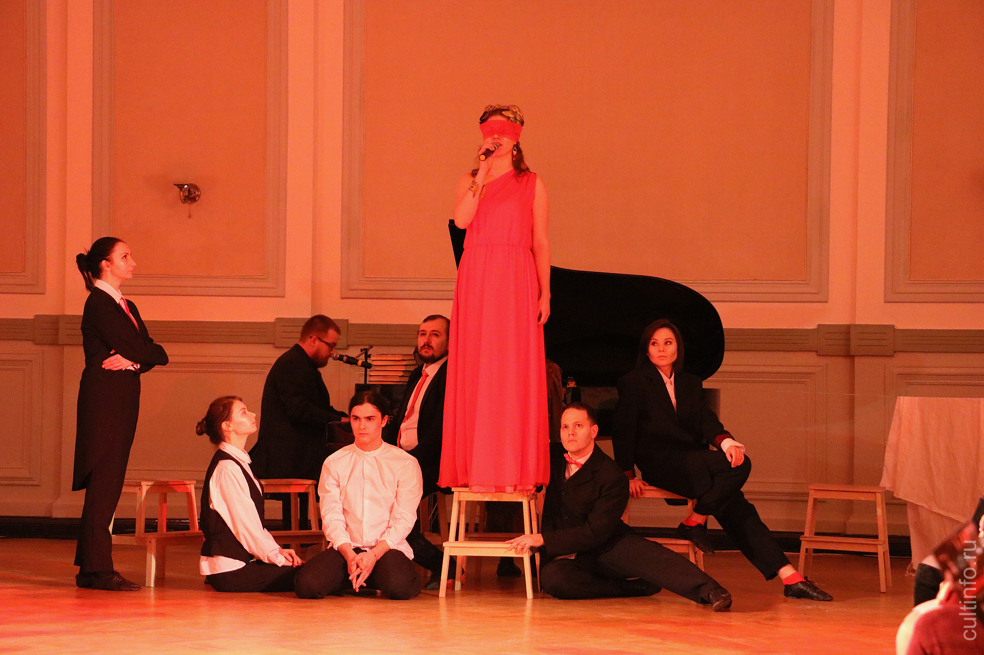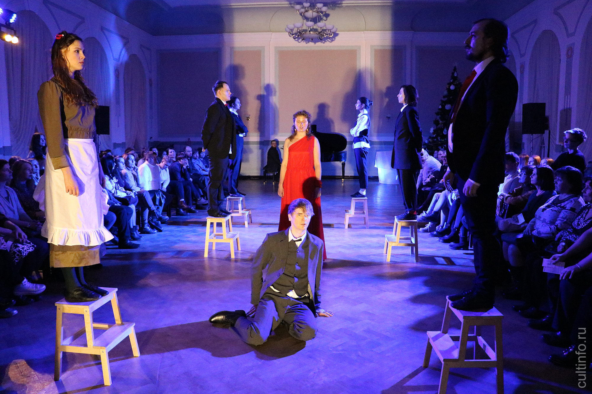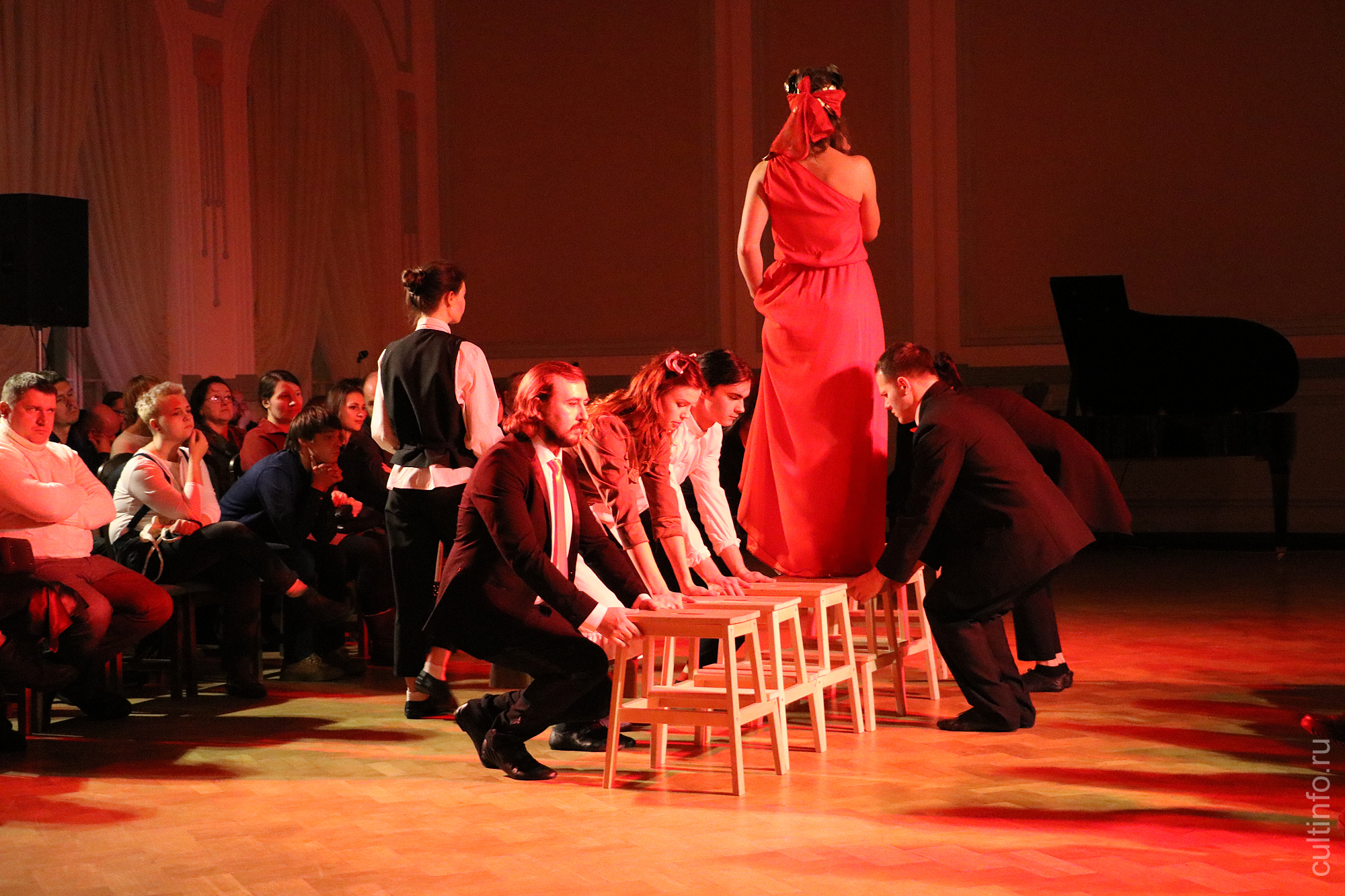 Интересно сценическое решение спектакля, подсказанное лабораториями физического театра, проводимых в рамках выигранного ОккервильТеатром президентского гранта. Здесь больше важно не «что», а «как» всё происходит: жесты, движения, перемещения актеров, скоординированность их действий. Актеры находятся на расстоянии вытянутой руки от зрителя, а порой – среди зрителей, растворяясь в них, делая их соучастниками происходящего. «Смотрите, это же Йозеф К.!», – неожиданно шепчет на ухо зрителю один из работников судебной канцелярии. И зрители поневоле начинают ощущать себя участниками абсурдного Процесса.
