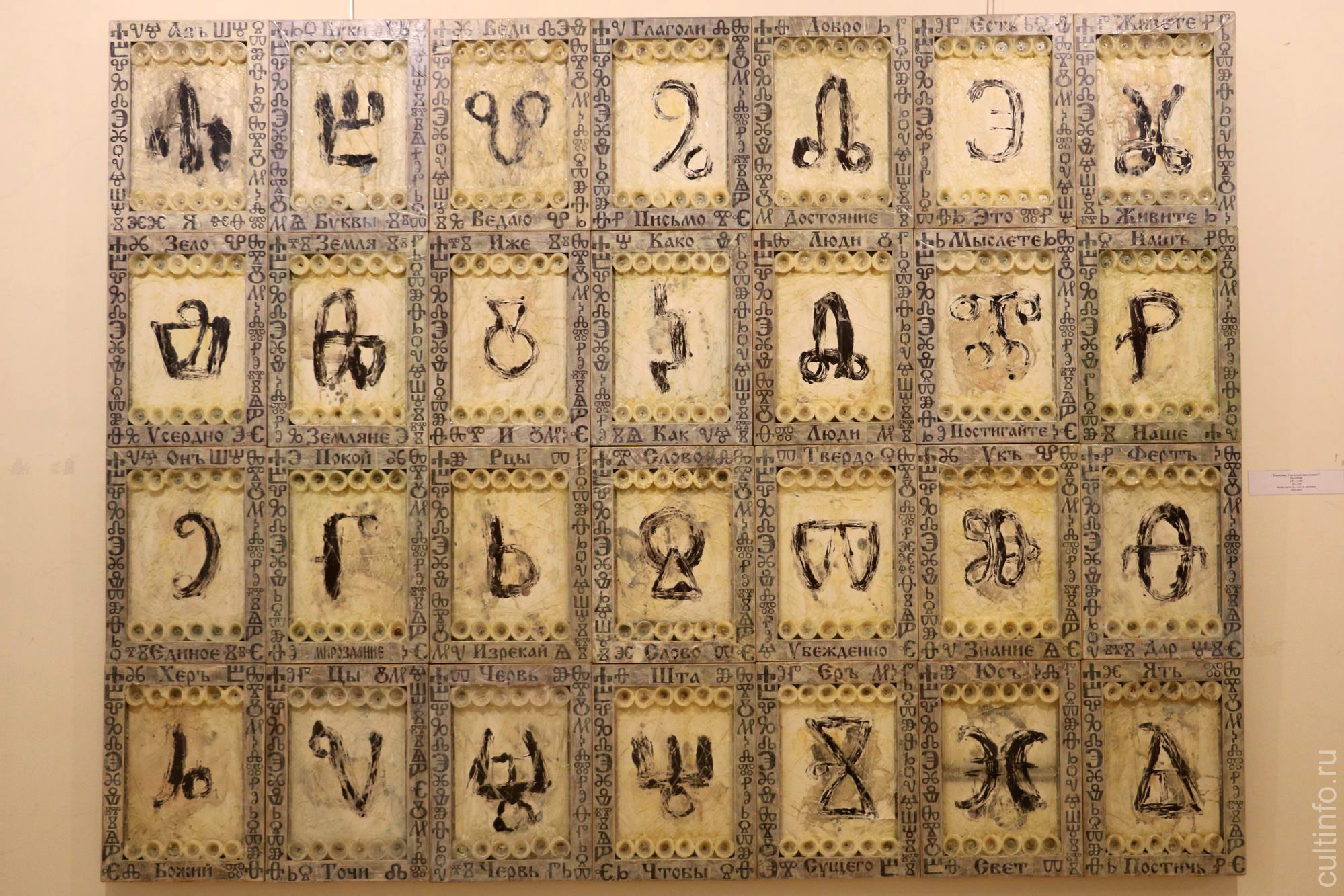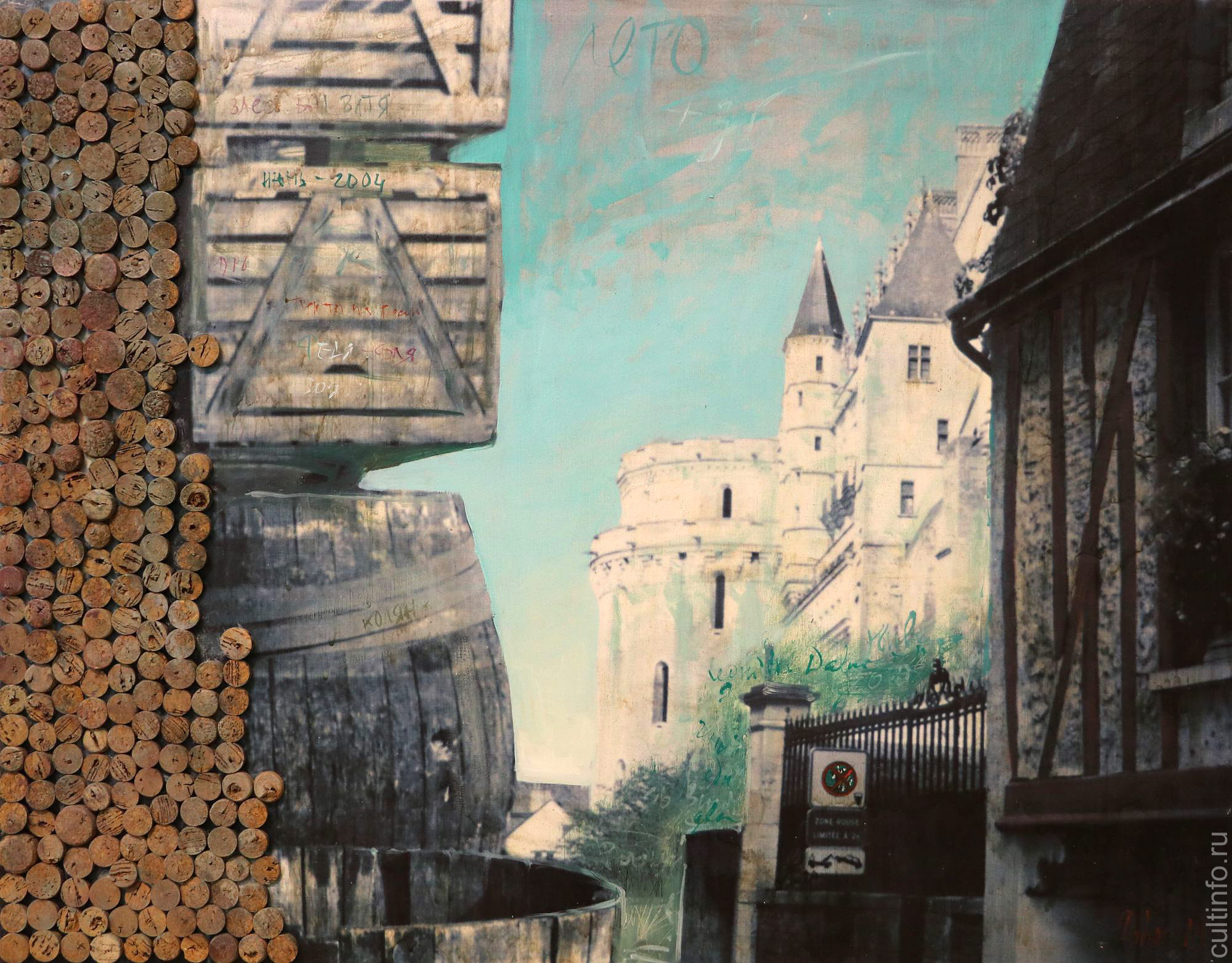 В своих инсталляциях Сергей Радюк разбивает пространство холста, делая его объемным и многоплановым. Живопись здесь органично сочетается со свечками, целыми или оплавившимися, с шелухой от семечек, с листами нотных записей, с монетками, пробками и пластиковыми коробочками от акварельных красок. Эта разнофактурность вызывает множество ассоциаций, заставляет вглядываться в детали и находить неожиданную связь между ними.