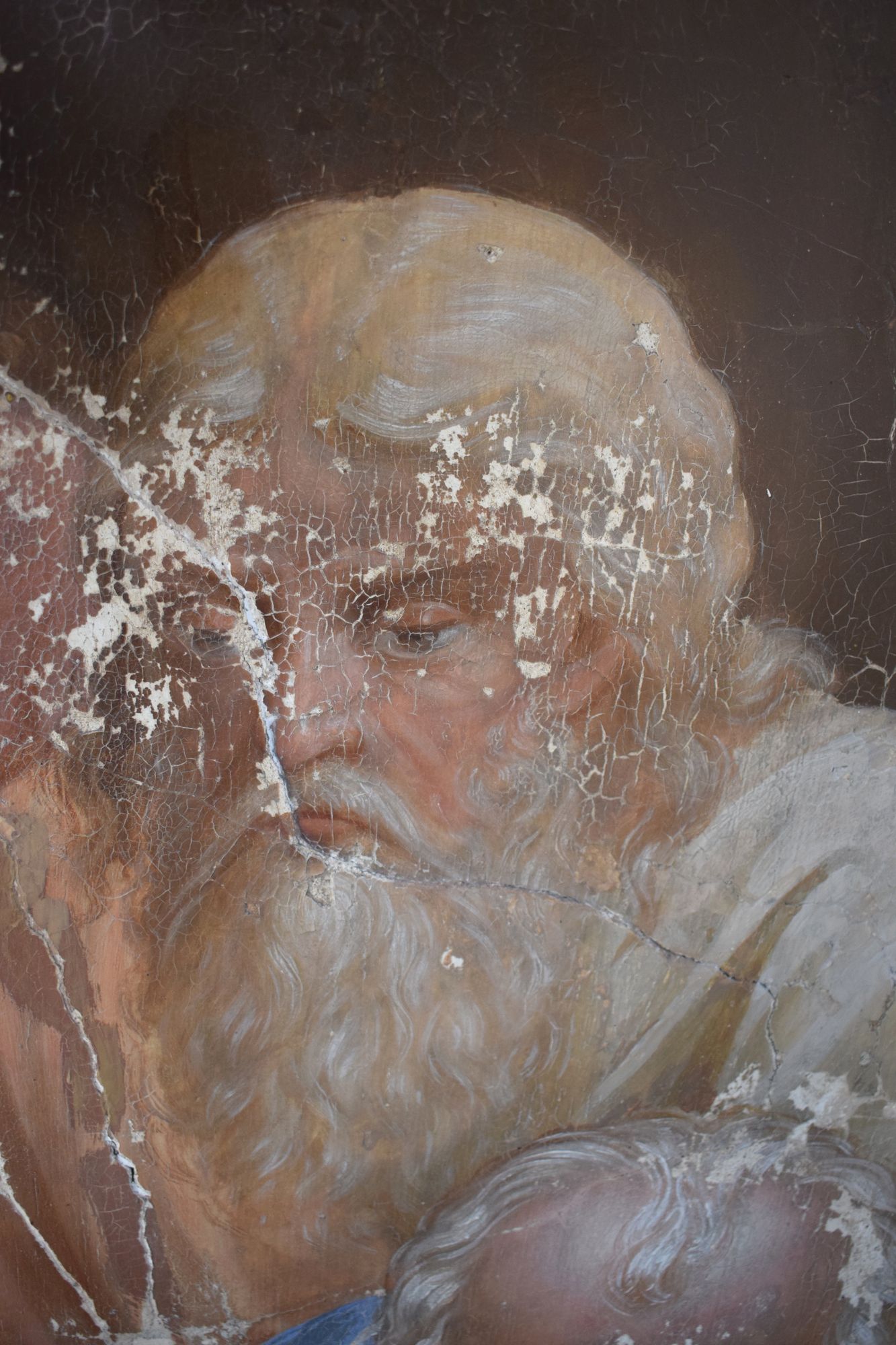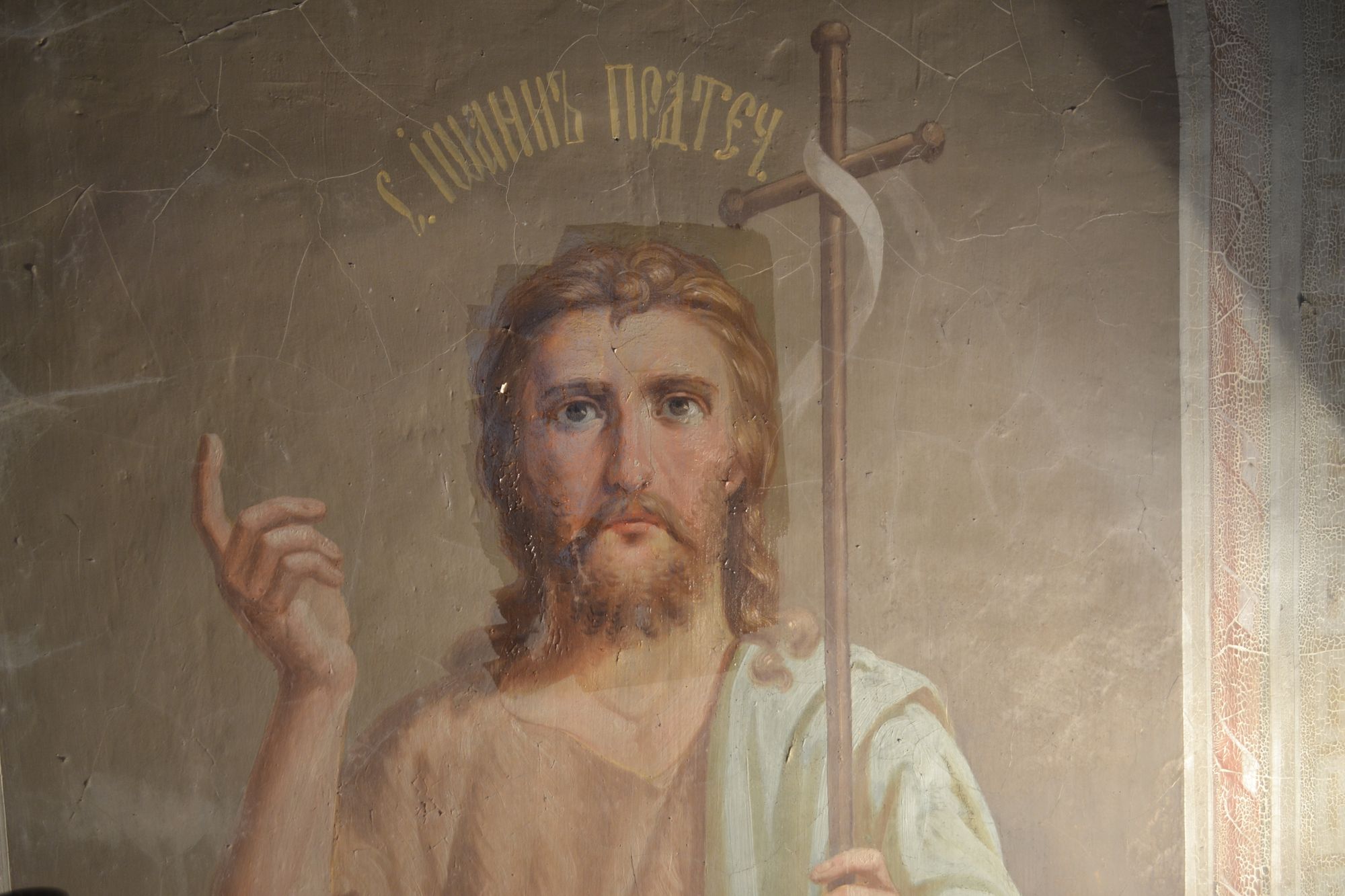 К сожалению, большинство композиций, особенно в верхней части свода и внизу, по-прежнему находятся на грани осыпания и ждут реставрационных работ. Здесь же, в четверике холодного храма, имеется иконостас с полным набором икон станковой темперной живописи разного времени. Некоторые из них подлинные и тоже нуждаются в реставрации.