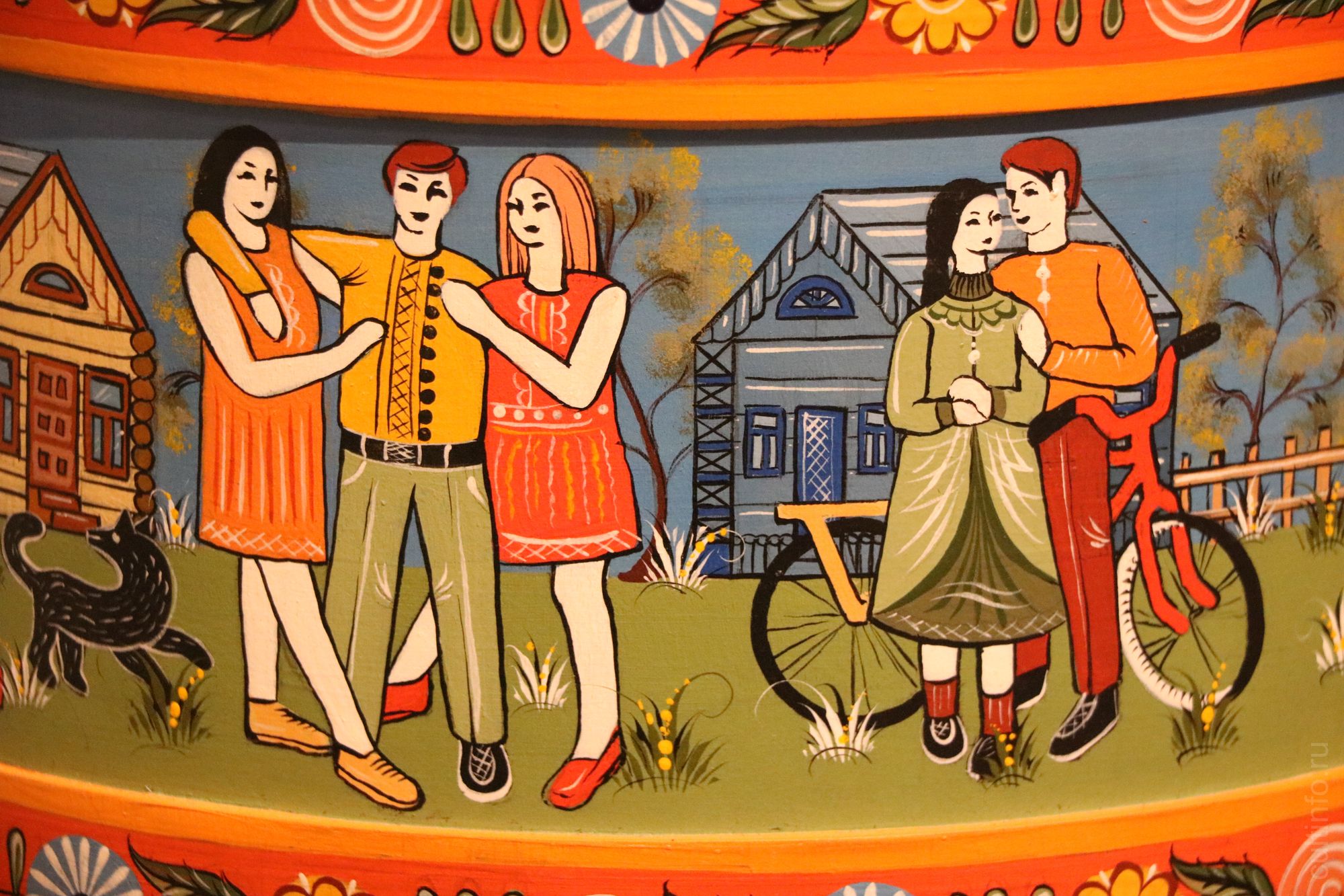 В уютном выставочном пространстве каждый экспонат выглядит как драгоценность, будь то эффектный кружевной зонт или резной мебельный гарнитур с расписными узорами. Изысканные кружевные панно и салфетки выгодно смотрятся на темном контрастном фоне. На выставке представлено 14 видов традиционных росписей, среди них – уфтюгская, великоустюгская, мезенская, борецкая, пермогорская, ракульская, грязовецкая, гаютинская роспись. «Чтобы создавать удивительные расписные вещи, необходимы мастерство, терпение и чувство вкуса, – обращает внимание куратор выставки Ольга Реброва. – Борецкая роспись, например, очень сложна композиционно, для нее характерно сочетание множества геометрических и живописных элементов».