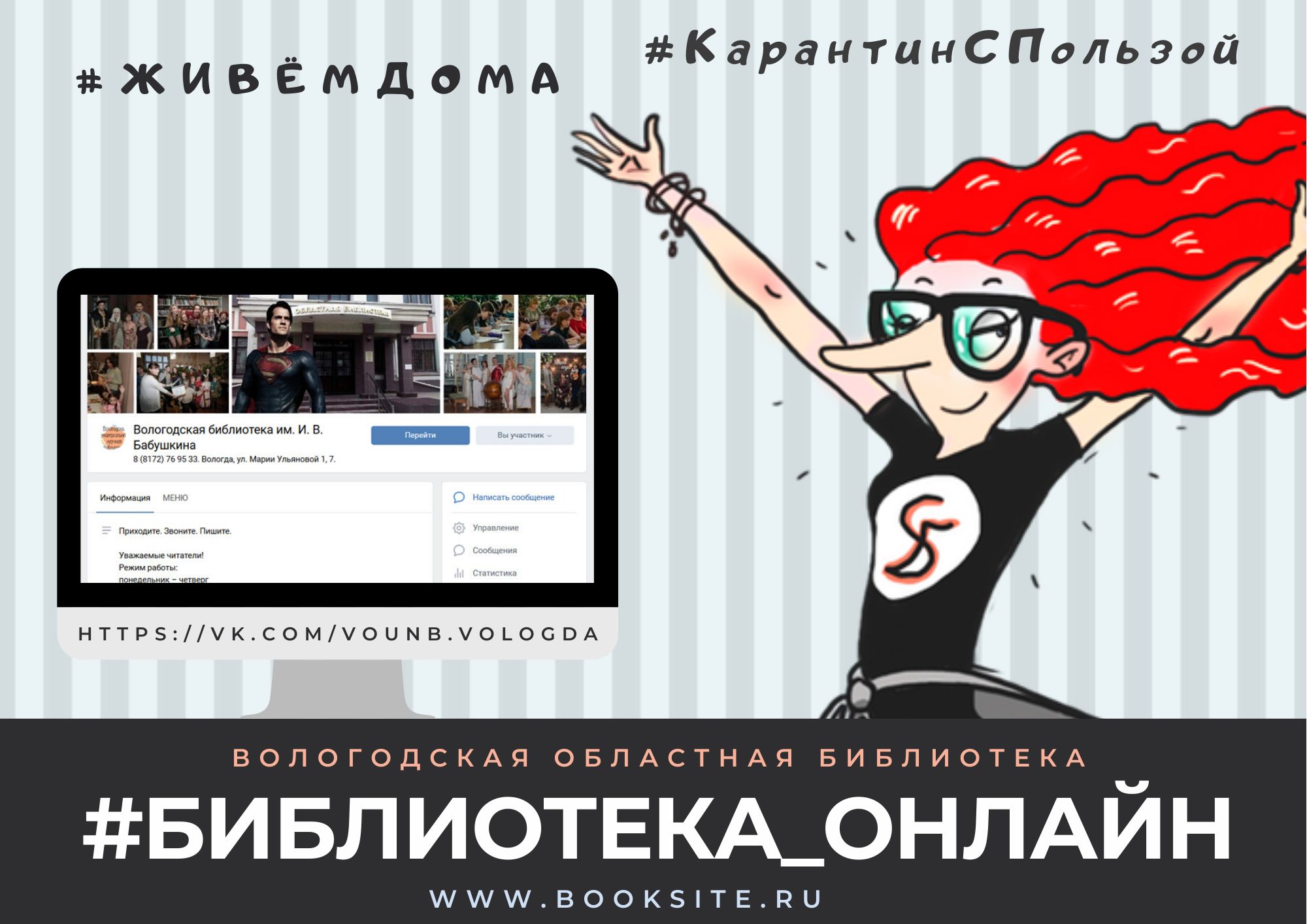 Вологодская областная библиотека им. И. В. Бабушкина объявляет о старте нового проекта #библиотека_онлайн. Он включает в себя прямые трансляции по нескучному краеведению, понятной культуре и домашнему чтению в официальной группе библиотеки «ВКонтакте». Первая трансляция состоится в пятницу, 10 апреля, в 18.00. Присоединиться можно по ссылке.