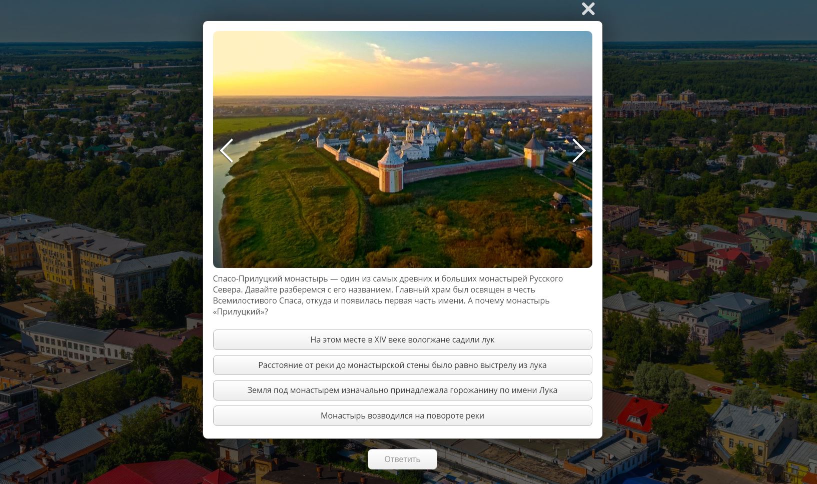 Игра создана в сотрудничестве с фотографом Алексеем Южаковым – именно его фотопанорамы города служат «игровым полем». Увидеть город с высоты птичьего полета, посмотреть на знакомые улицы и здания с необычного ракурса – сыграть стоит уже ради одного этого. Добавим, что съемкой фотопанорам Алексей Южаков занимается давно, с его участием подготовлены многие известные виртуальные туры: по музею «Семёнково», по памятникам Вологодской епархии, по Великоустюгскому району, по Белозерскому кремлю и даже по Форту Росс в Калифорнии.
