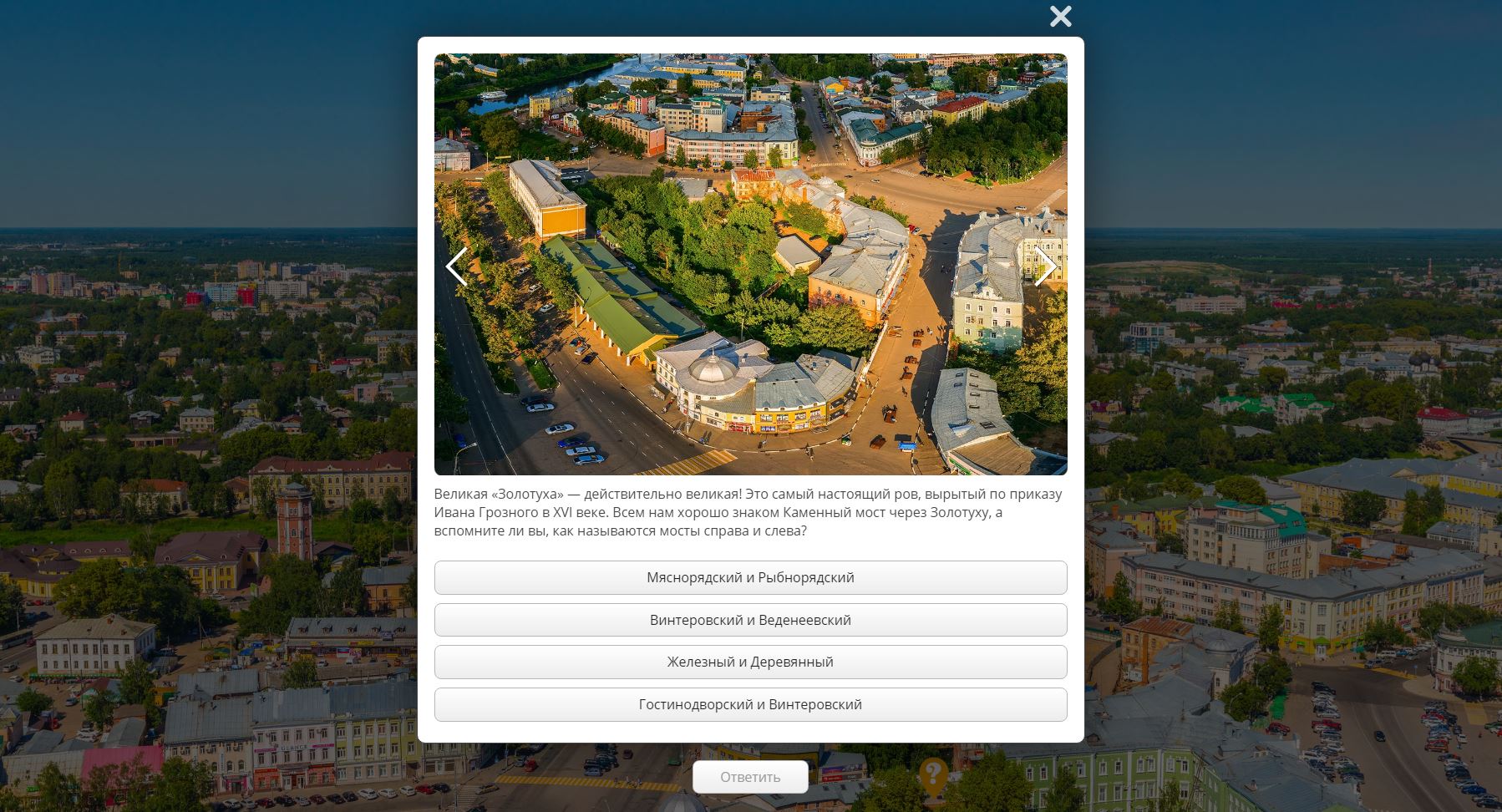 Для известных вологодских экскурсоводов Нины Смелковой и Кати Хоботовой время самоизоляции не только не стало временем «простоя», но напротив, открыло массу возможностей для реализации самых необычных творческих идей. В середине апреля основатели бюро экскурсий «Вокруг да около» презентовали первый эпизод проекта «Дом живой», а сейчас преподносят истосковавшимся по прогулкам вологжанам замечательный подарок – интернет-игру «Прогулка над Вологдой». Игра представляет собой тест из 15 вопросов, которые касаются истории города в самых разных ее проявлениях. В игре нет ни одного вопроса, ответ на который очевиден, а варианты ответов, предлагаемые для раздумья, позволяют и подумать, и посмеяться.