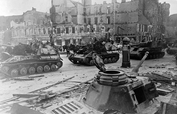 Войска 1-го Белорусского фронта под командованием маршала Жукова совместно с войсками 1-го Украинского фронта под командованием маршала Конева успешно завершили штурм Берлина.
